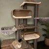 The Virgo 196 is truly a super-modern scratching post that looks great in your living room. This scratching post is tall and a real eye-catcher in your home – it is beautiful, luxuriously finished and, thanks to the matching colours, it fits in with any interior. But importantly of course, this scratching post is a treat for cats. Really everything your cat Nods is on it: an XXL lounge basket on top, two soft wash-out hammocks to relax in and a nice big cat house. All with soft plush and nice thick sisal to scratch on. This is the perfect scratching post for your cat! confidence is.
