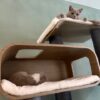 Heel mooi,juist jammer dat je de krabpaal uit mekaar moet halen om de hangkussens eruit te halen.