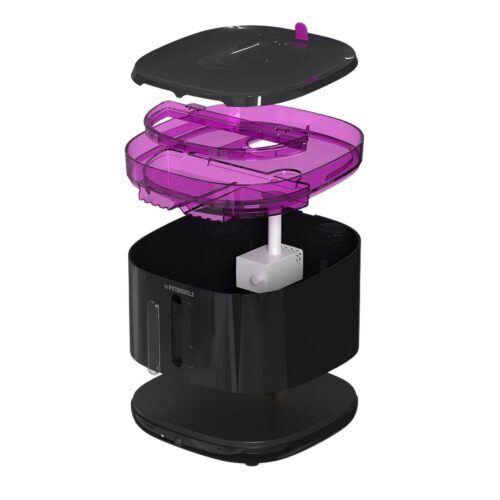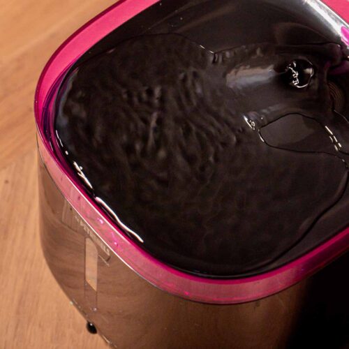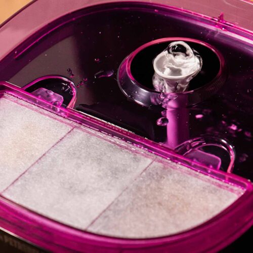 Heel erg fijne waterfontijn! Binnenkant bestaat uit één enkele bak zonder randen en de pomp is draadloos. Daarmee is alles goed schoon te houden. Accu gaat lang mee en je hoort erg helemaal niks van.