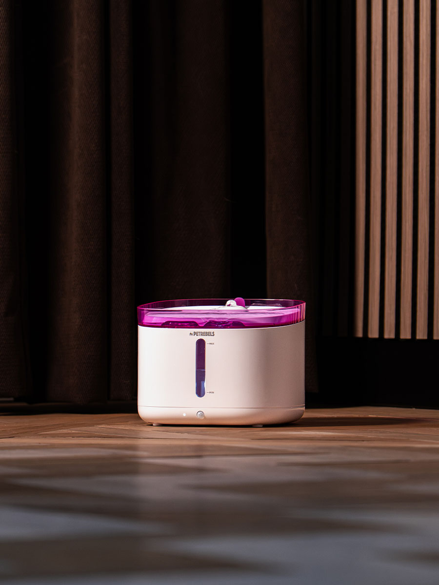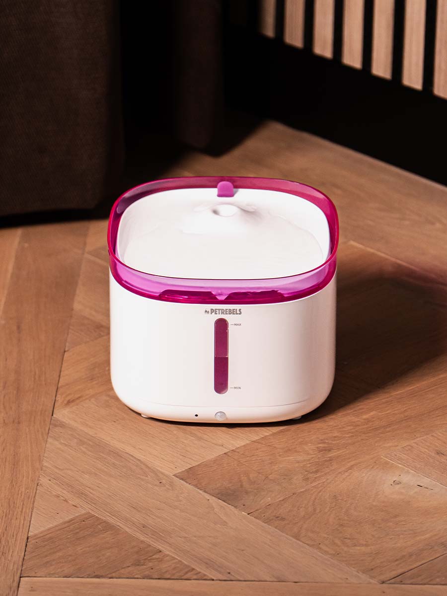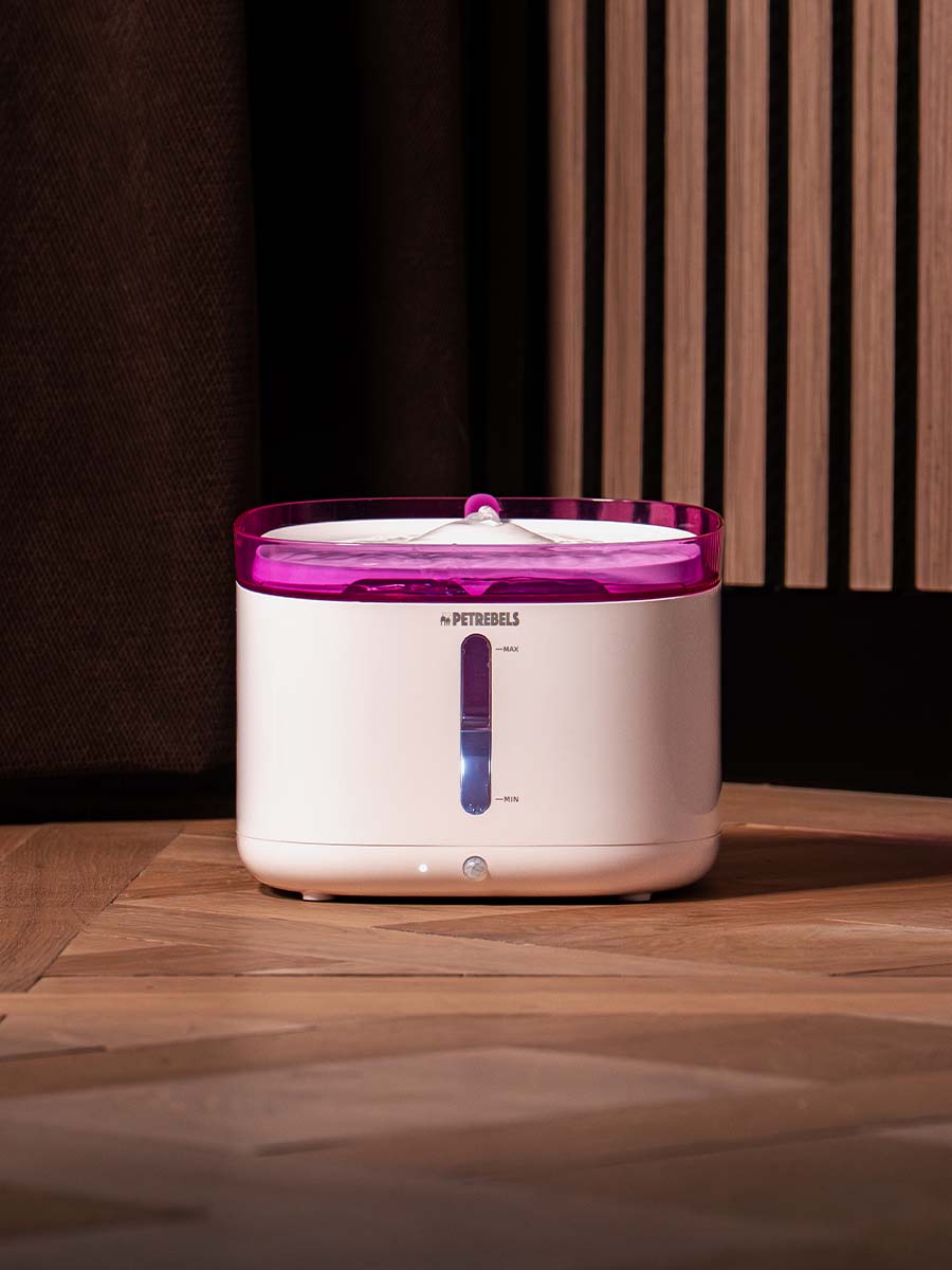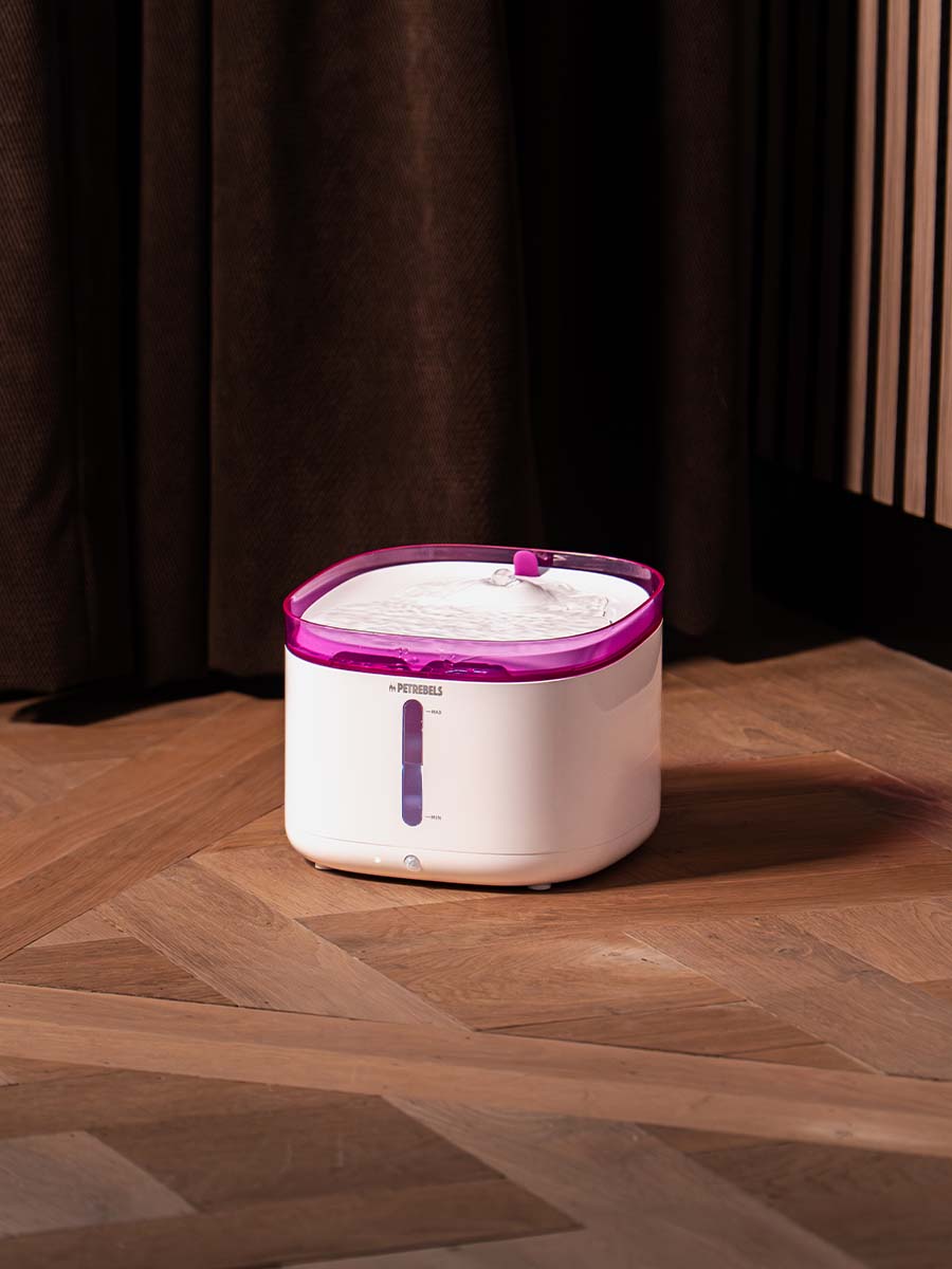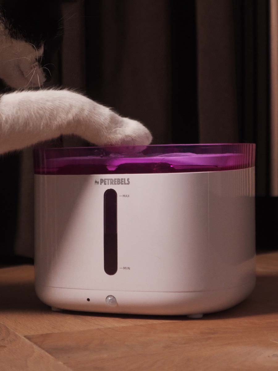 Cats are poor drinkers. But we have designed a very smart and stylish solution that will keep your cat hydrated and healthy all year round: our Jet 19 – a beautifully designed drinking fountain for cats that works with or without a plug. Choose a continuous water flow or switch on the infrared sensor so that the fountain only flows when your cat is nearby. Handy: thanks to the transparent window, you can check the water level and the smart filter system keeps the water fresh and clean at all times. And as if that weren’t enough, the fountain itself indicates when the filter needs to be replaced or when there is not enough water.