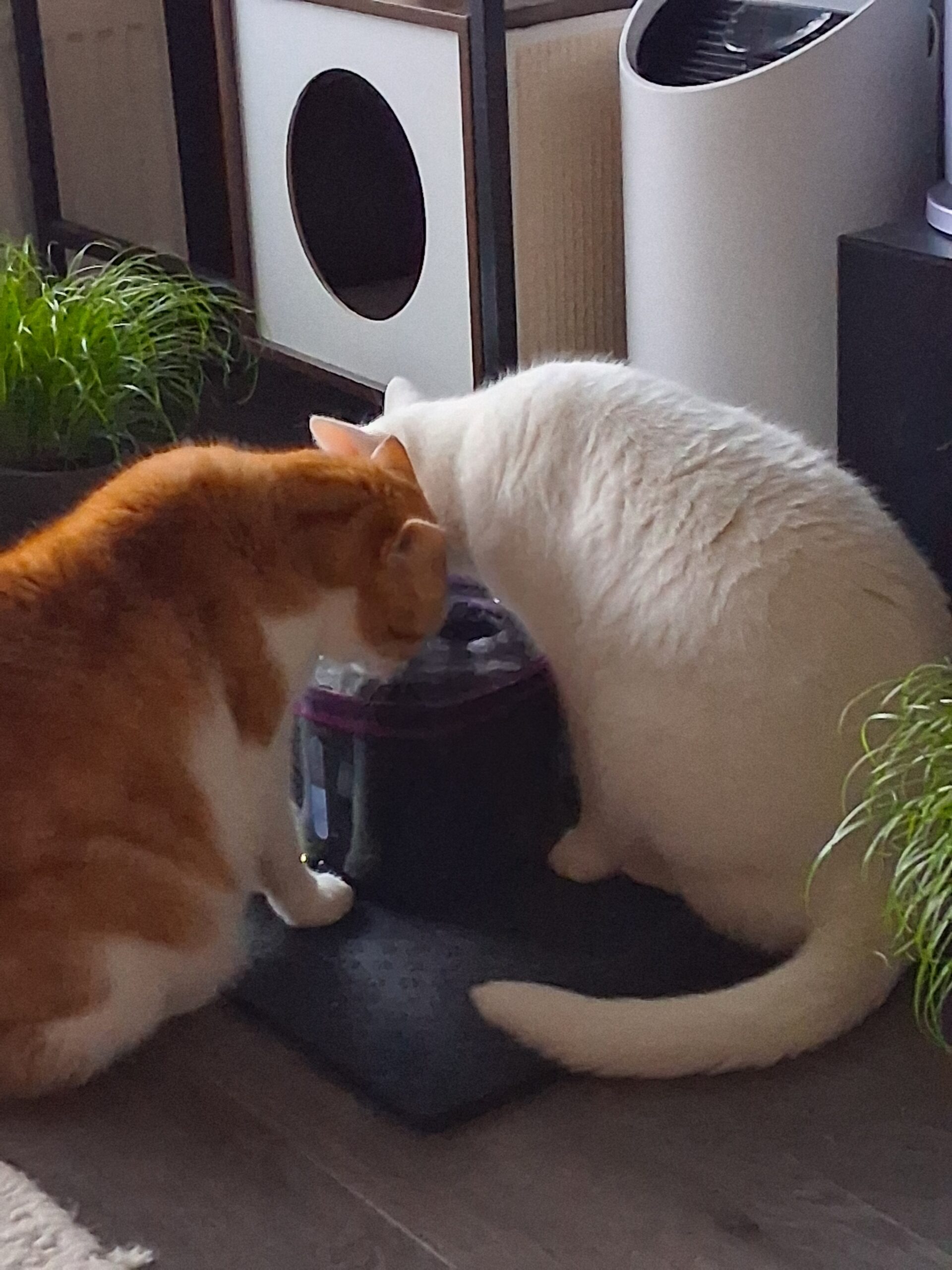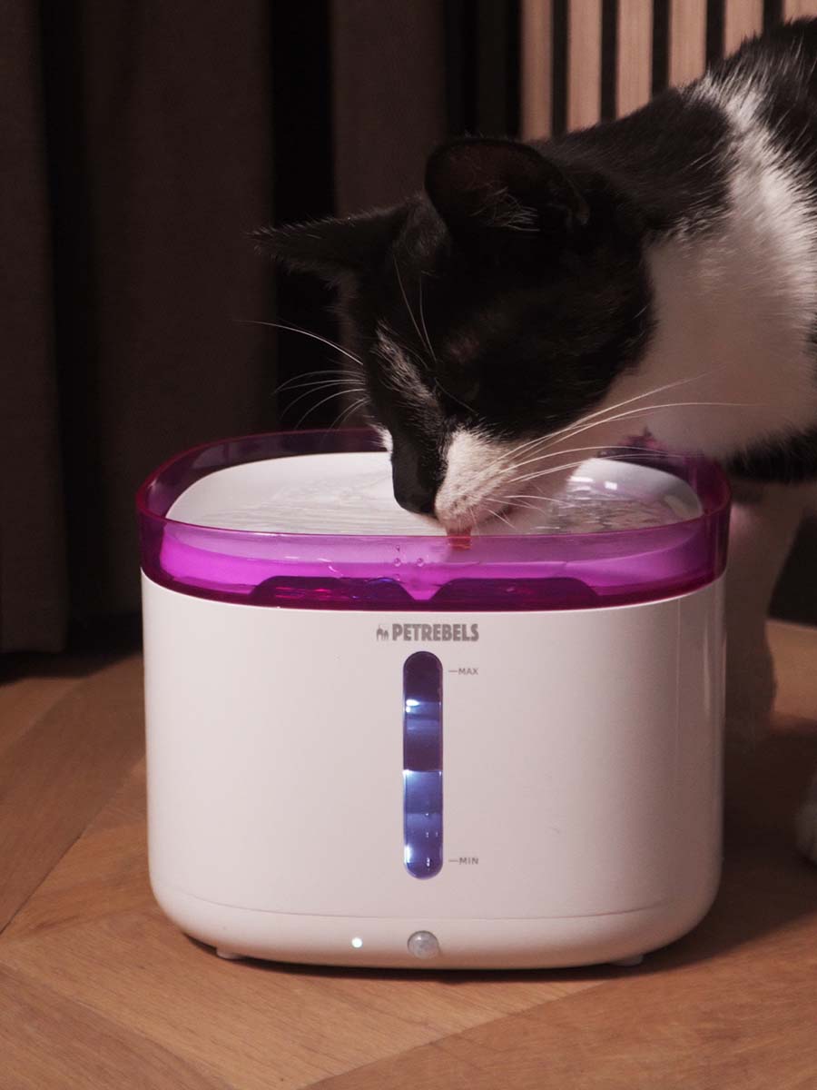 Minpuntje vind ik als kat ervoor staat om te drinken dan stopt de fontein als nog na 15 seconden met water borrelen. Eigenlijk moet het doorgaan tijdens het drinken.