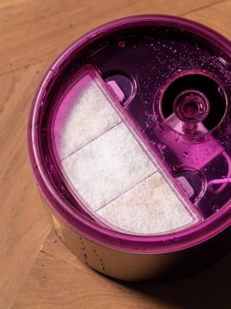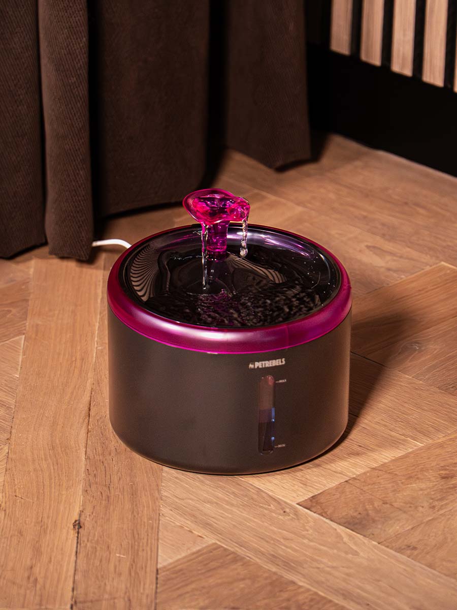 Treat your cat to our Spring 20 – a beautiful fountain with real running water. This is thanks to the 360-degree waterfall shower head. Running water encourages your cat to drink more often, which is exactly what it needs to stay healthy. The pump in this drinking fountain is super quiet (> 35 db), so you can hardly hear it. The tank has a capacity of no less than 2.4 litres and, thanks to the smart filter system, the water stays clean and free of bacteria. Also handy: the transparent window allows you to see exactly how much water is left. No problem in the evening either, as this drinking fountain has LED lighting.