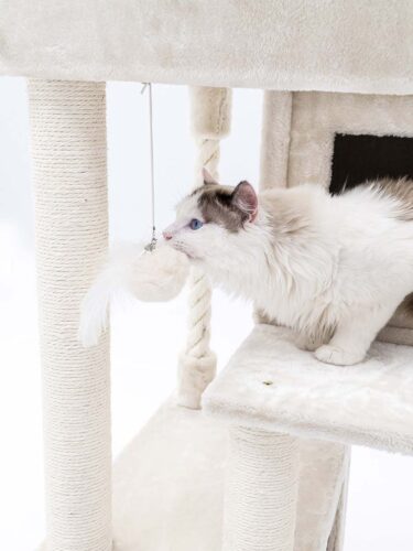 Habe die Funky Bälle in Creme zu dem neuen Baum Route 180 für meine Katze gekauft.