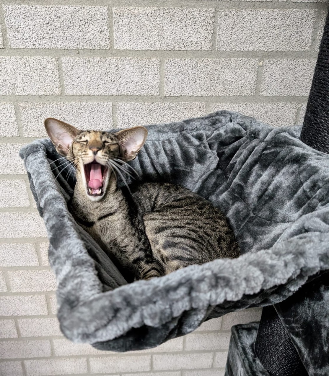 Tip: keep in mind that because of the thickness of the metal frame of the hammock, the scratching post will not stand straight.