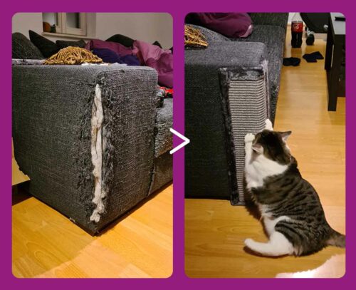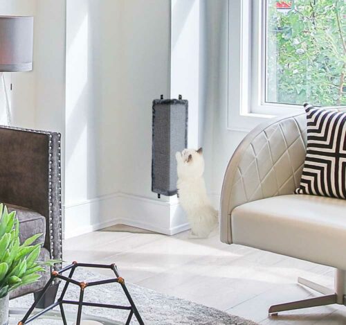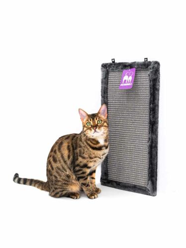 You attach this scratch board to a place where your cat often walks by, on the corner of a wall. Of course, this is very easy, because you create a lot of scratching opportunities for your cat without it taking up too much space. And just like all our other cat furniture, this scratching board is of excellent quality – made of extra strong sisal carpet and velvety soft plush around the edges. Bet your cat will be scratching it every day.