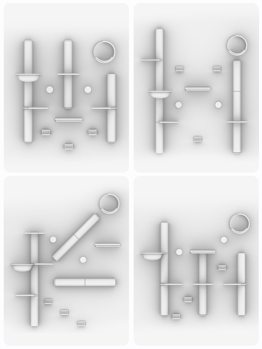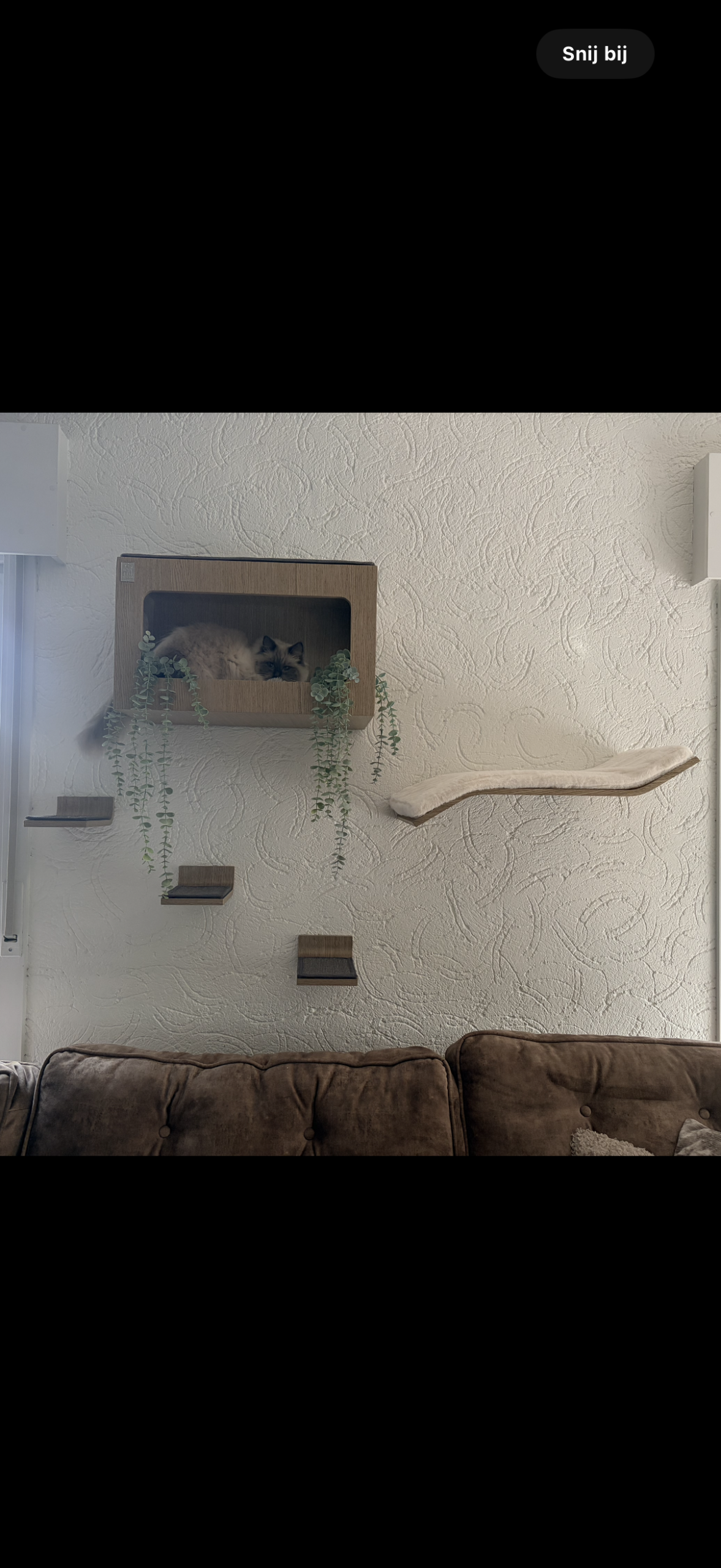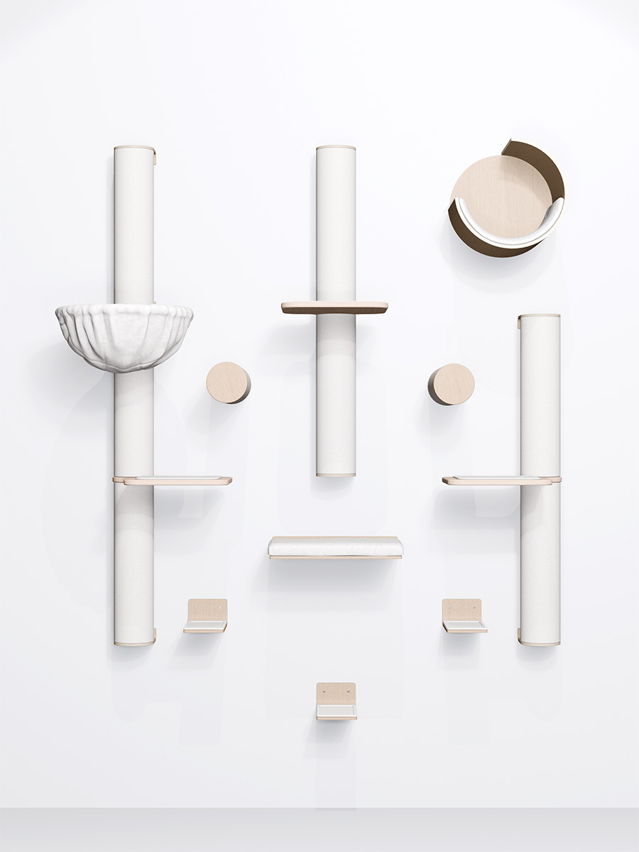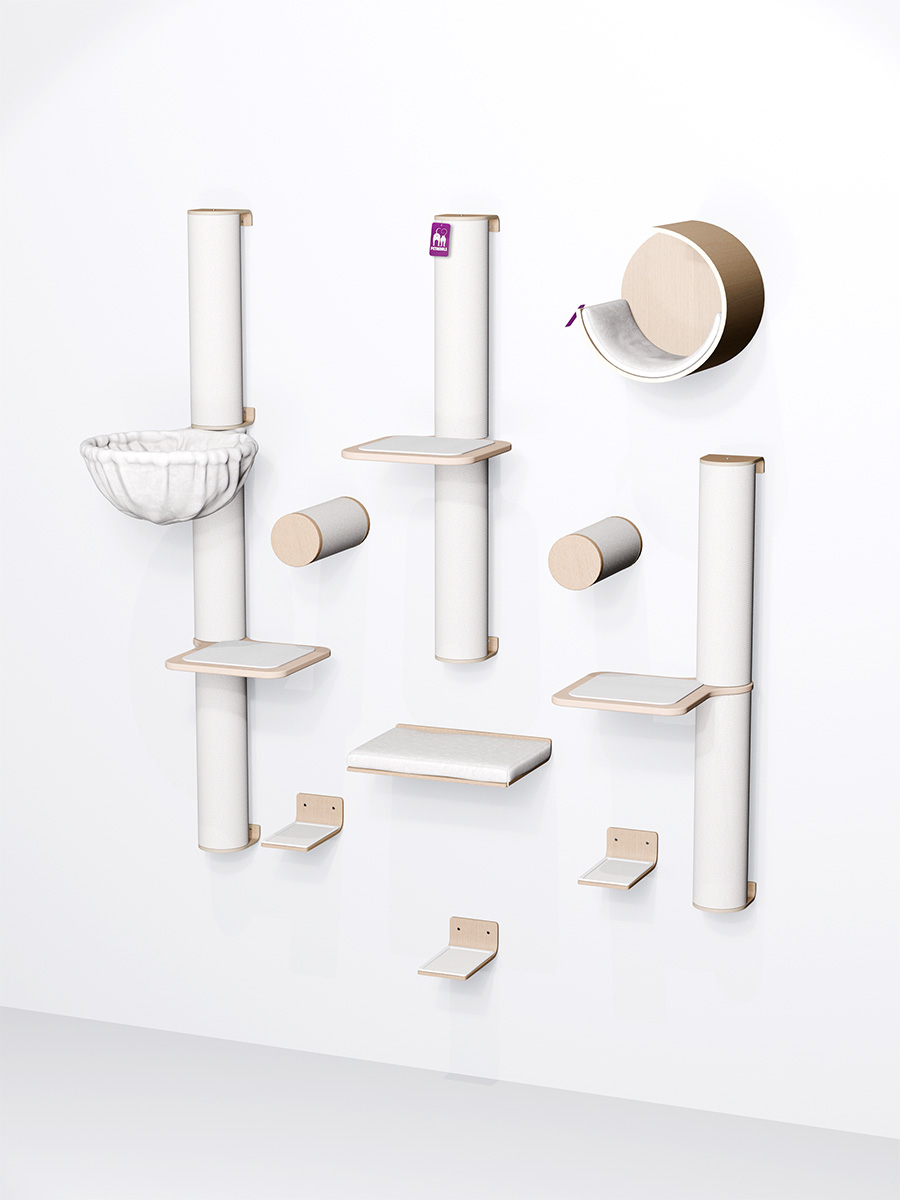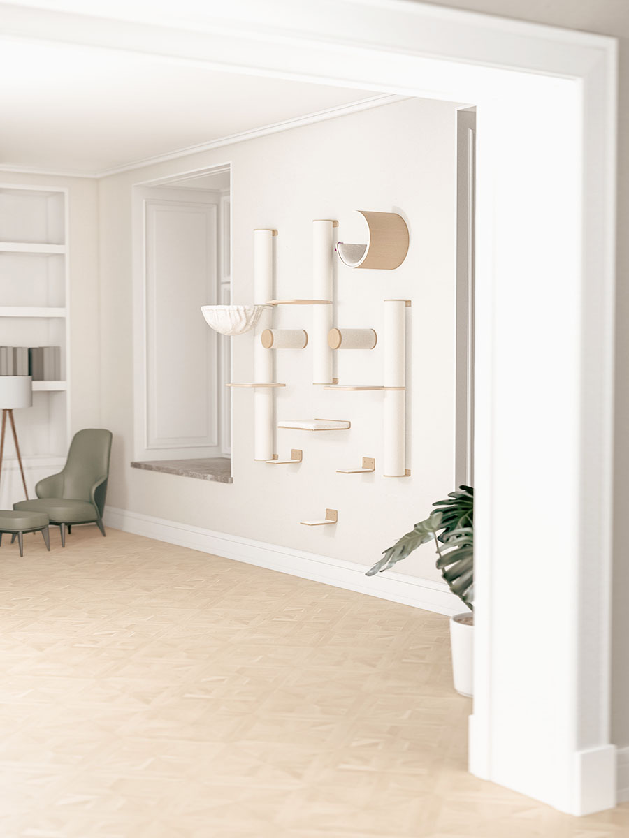 This versatile set can be assembled in several ways. Take into account the size and climbing ability of your cat(s). Do you have small cats or do they have difficulty climbing? Then hang the parts close together. Do you have large, energetic cats? Then you might consider hanging the parts further apart.