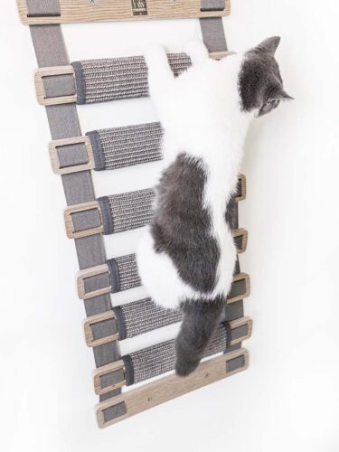 Cats love to scramble. So what do you treat any cat to? Right, with a nice ladder they can climb. But cats also like to scratch, so that’s why this product is also lined with strong sisal. Ladder 91 is a super cute part of our Wall of Rebels collection: these are wonderful products for cats to sleep, play, climb, scratch and sleep in. And you can combine them endlessly! With Ladder 91 your cat climbs with ease to hammock Lazy 50, the Box Bag or scratching board Scratch.