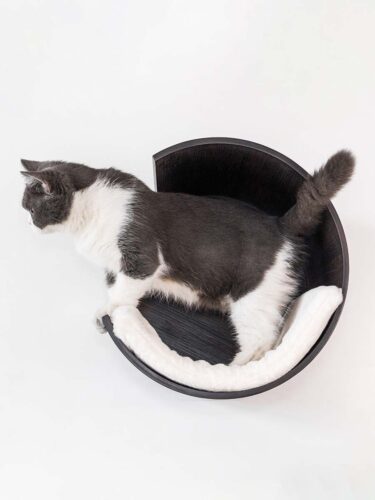 Moon 40 is a lovely soft wall-mounted cat basket and part of our Wall of Rebels collection: a beautiful line of products for cats to sleep, play, climb, run and scratch in. And which you can combine endlessly. Mount Moon 40 low to the ground if your cat is a bit older, or not so mobile. Is your cat active? Then hang this cat basket nice and high and combine it with Wall of Rebels’ handy climbing parts – such as the Steps, Horizon, Ladder or Bridge.