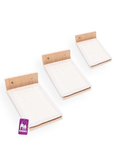 The Steps 25 come in a set of 3 and are a super cute addition to any item in our Wall of Rebels collection. You attach the Steps to the wall and turn them into a super cute cat staircase. Ideal for scratching and reaching all the other cool items in the Wall of Rebels collection. Round cat basket Moon 40 for example or the cool Box 60. More cats in the house? Then expand with relaxation board Wave 70 or cool scratching board Scratch. And make your cat wall extra adventurous with the Steps, Bridge or the sturdy Box Bag. We bet your cat will soon be super happy!