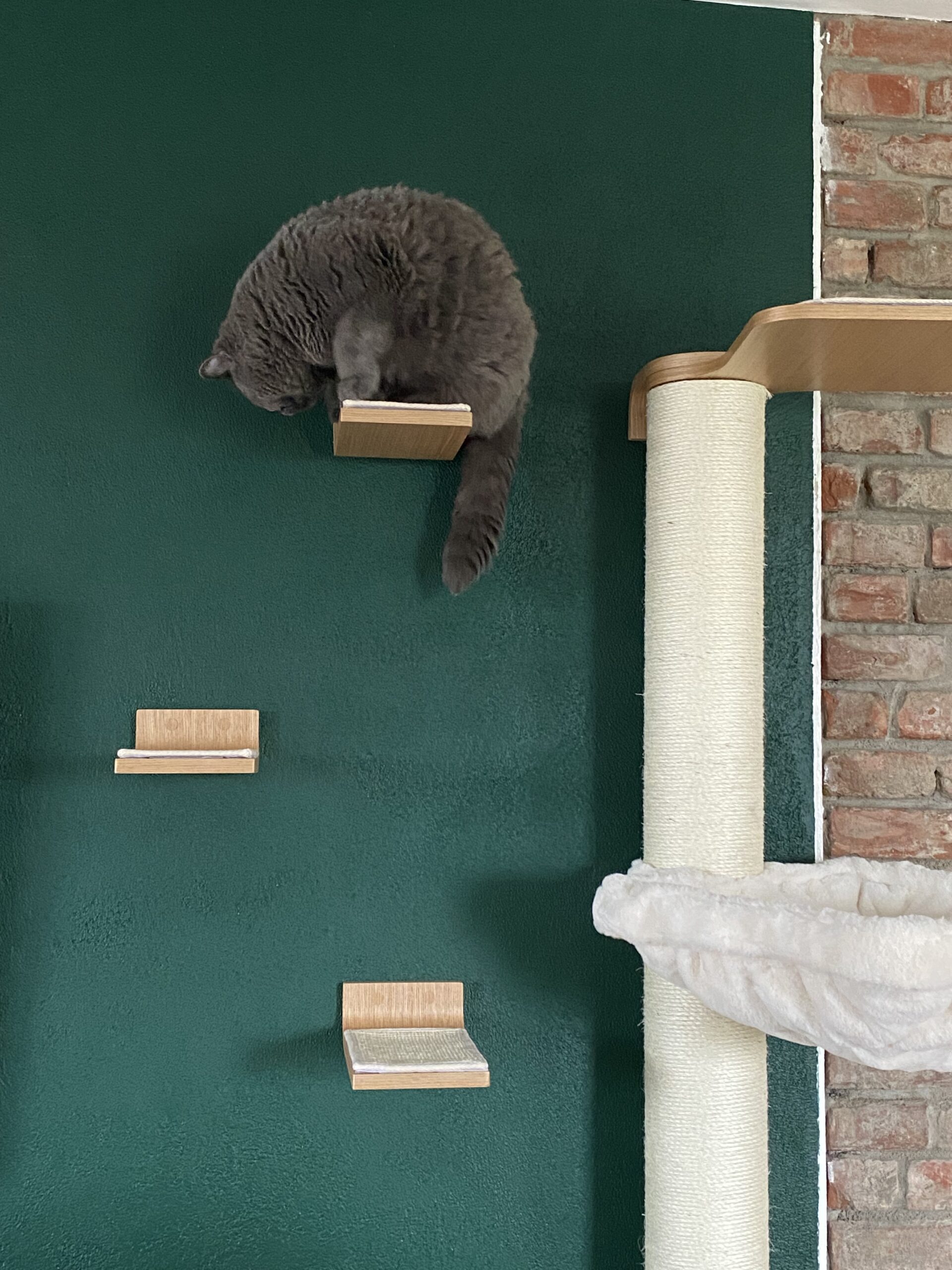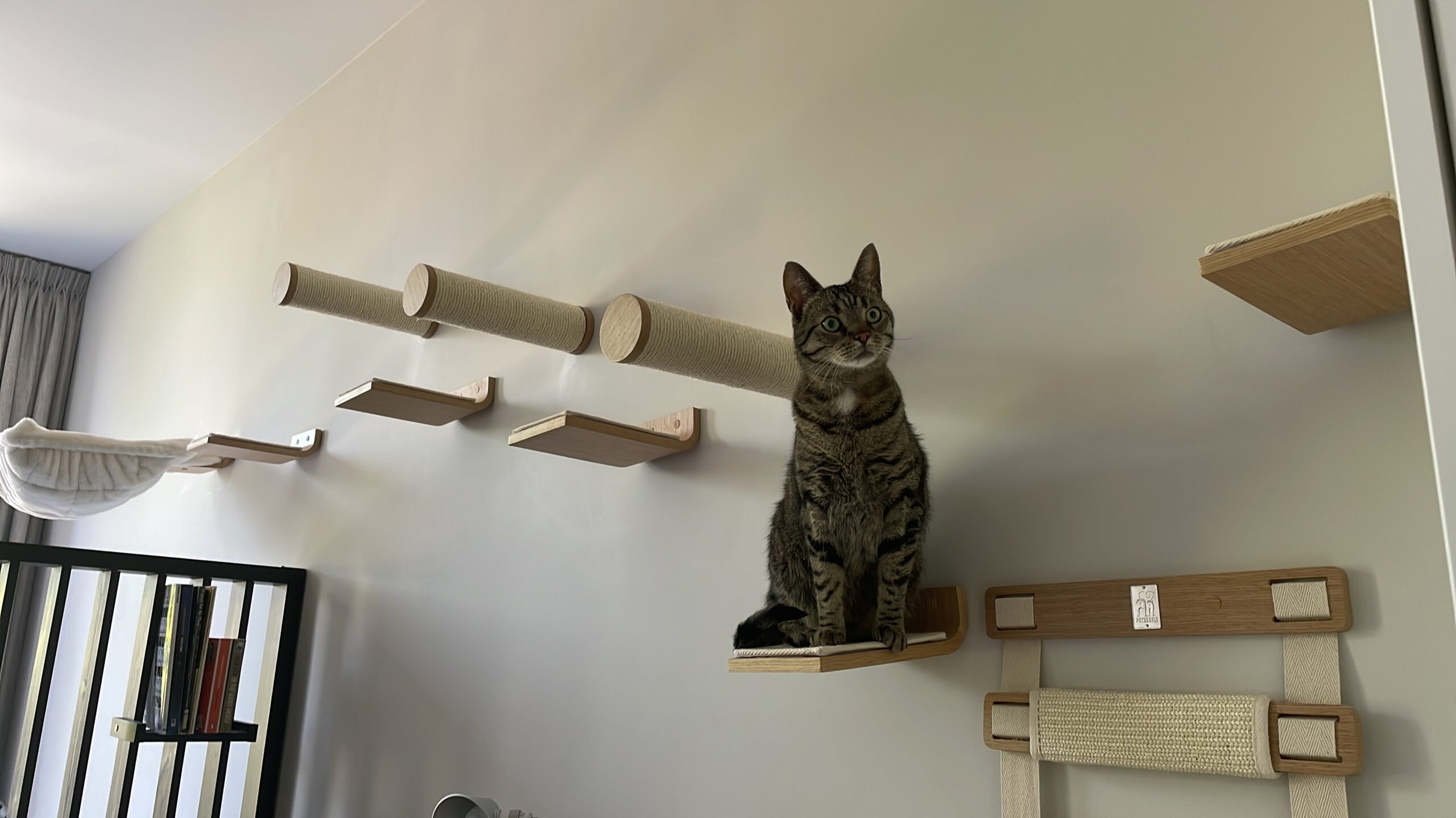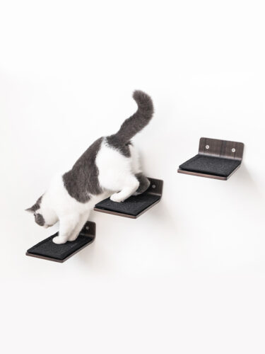 Horizon 0930 come in a set of 3 and are a perfect addition to any item in our Wall of Rebels collection. These horizontal scratch posts attach to the wall – ideal for scratching and made for easy climbing to any item. To hammock Lazy 50, for example, or the chic Oval Office. Do you live with more than one cat? Then expand your cat wall with relaxation board Wave 70 or cool scratching board Scratch. And make your cat wall extra adventurous with the Steps, Ladder or the sturdy Box Bag.
