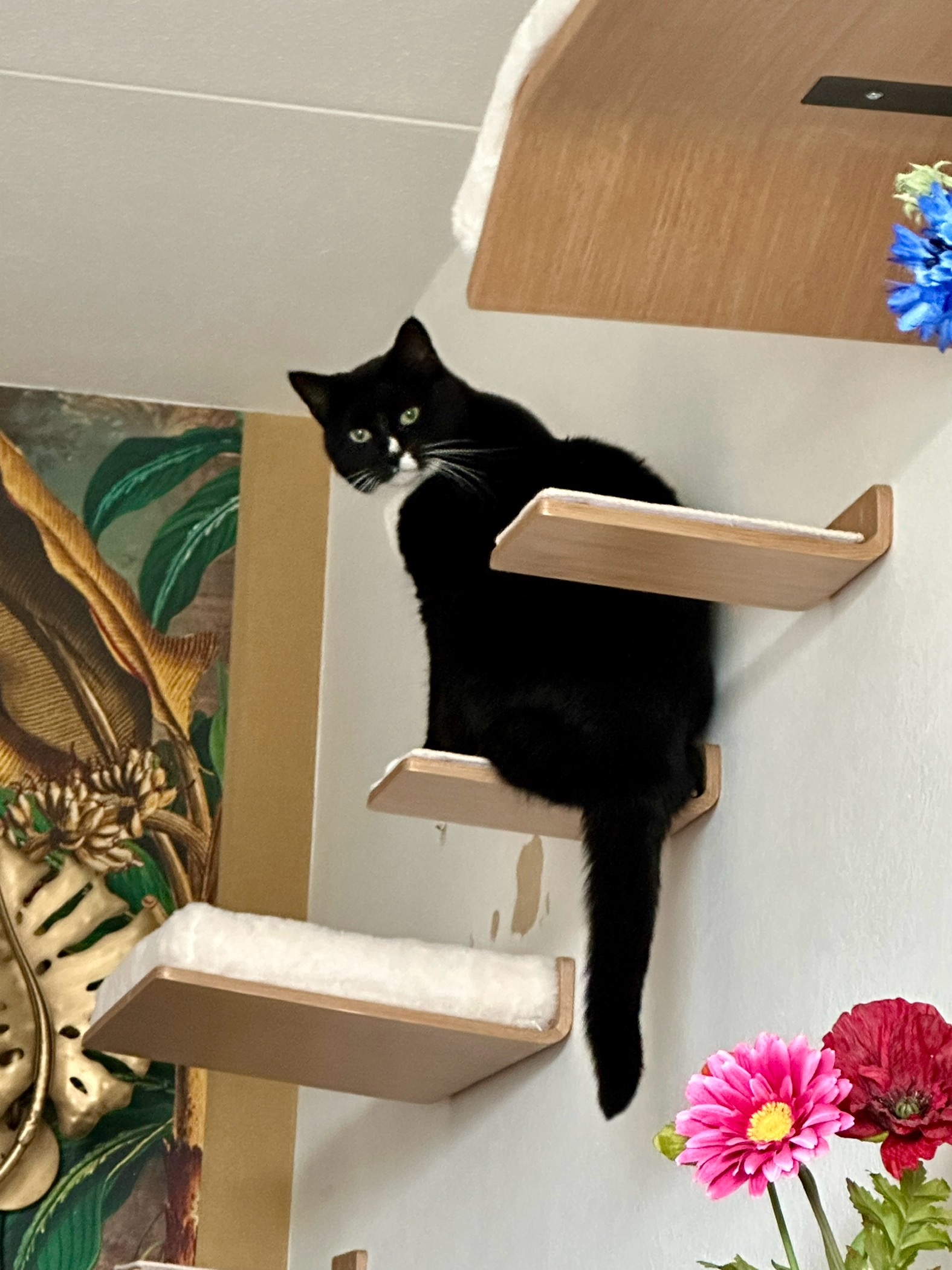 Cat steps made from scratch posts