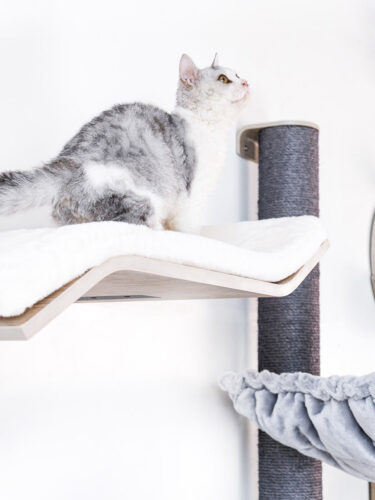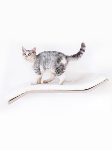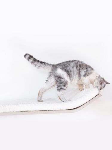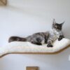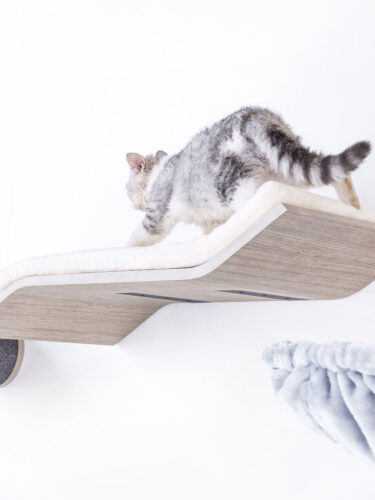 Wave 70 is a tastefully curved wall shelf with cat cushion and part of our Wall of Rebels: a beautiful collection of products for cats to sleep, play, climb, run over and scratch at. Hang Wave 70 low to the ground if your cat is still small or a bit older. Or high up if your cat is playful and active. Do you have more cats in the house? Of course you can spoil them with a nice place to sleep too – Moon 40 is cosy and cosy and Relax 50 and Curve 70 are big and soft. And with the cool Wall of Rebels Steps, Scratch 70, Ladder or Bridge every part is easily accessible.