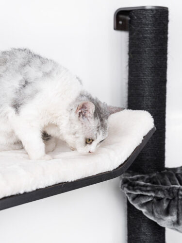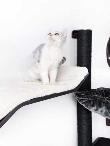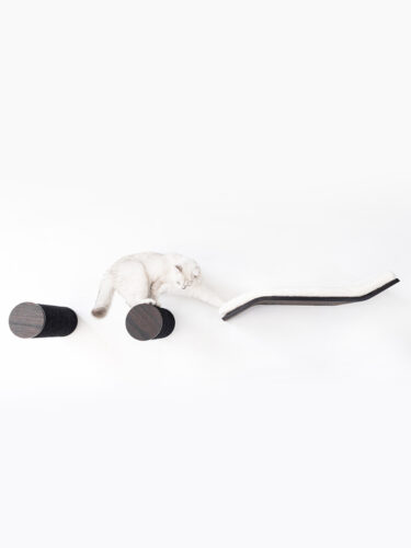 Wave 70 is a tastefully curved wall shelf with cat cushion and part of our Wall of Rebels: a beautiful collection of products for cats to sleep, play, climb, run over and scratch at. Hang Wave 70 low to the ground if your cat is still small or a bit older. Or high up if your cat is playful and active. Do you have more cats in the house? Of course you can spoil them with a nice place to sleep too – Moon 40 is cosy and cosy and Relax 50 and Curve 70 are big and soft. And with the cool Wall of Rebels Steps, Scratch 70, Ladder or Bridge every part is easily accessible.