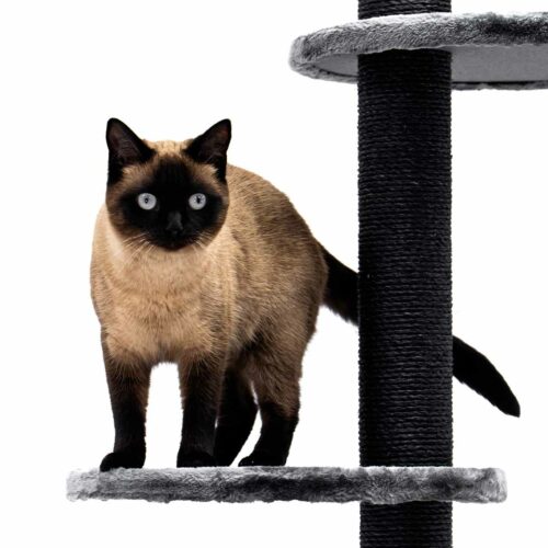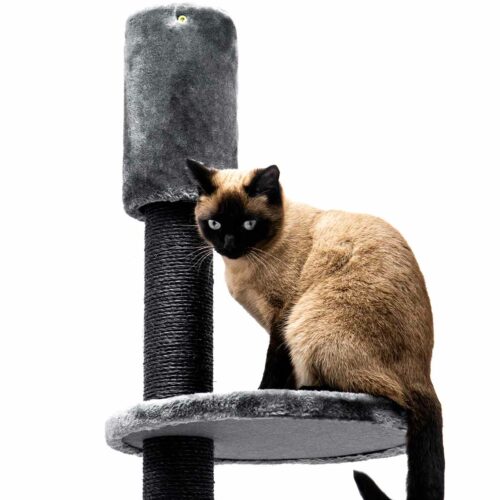 Cet arbre simple est très utilisé par les chats. Ils peuvent retrouver leur sensation de monter dans les arbres . Ils sont plusieurs à monter tout en haut à toute vitesse soit seul soit à plusieurs . Ensuite ils jouent comme s’ils avaient attrapé une proie. Je l’ai mise devant la fenêtre et près d’un radiateur. Elle sert donc aussi de poste d’observation et la petite loge permet un repos au chaud.