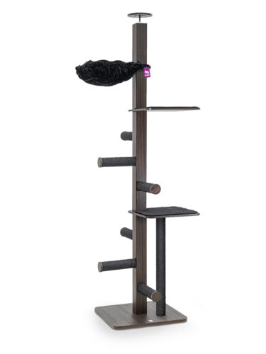 Tu es à la recherche de l’outil polyvalent parmi les griffoirs ? L’Aquarius 265 est fait pour toi. Cet accroche-regard absolu est fabriqué en bois d’eucalyptus et est réglable en hauteur. Avec un énorme hamac au sommet, ton chéri pourra se détendre. Des tapis à gratter robustes garantissent que ton Rebelle pourra s’amuser à aiguiser ses ongles. Ce griffoir moderne est super beau et prend très peu de place. Peut être tendu contre des plafonds de 243 à 265 centimètres.
