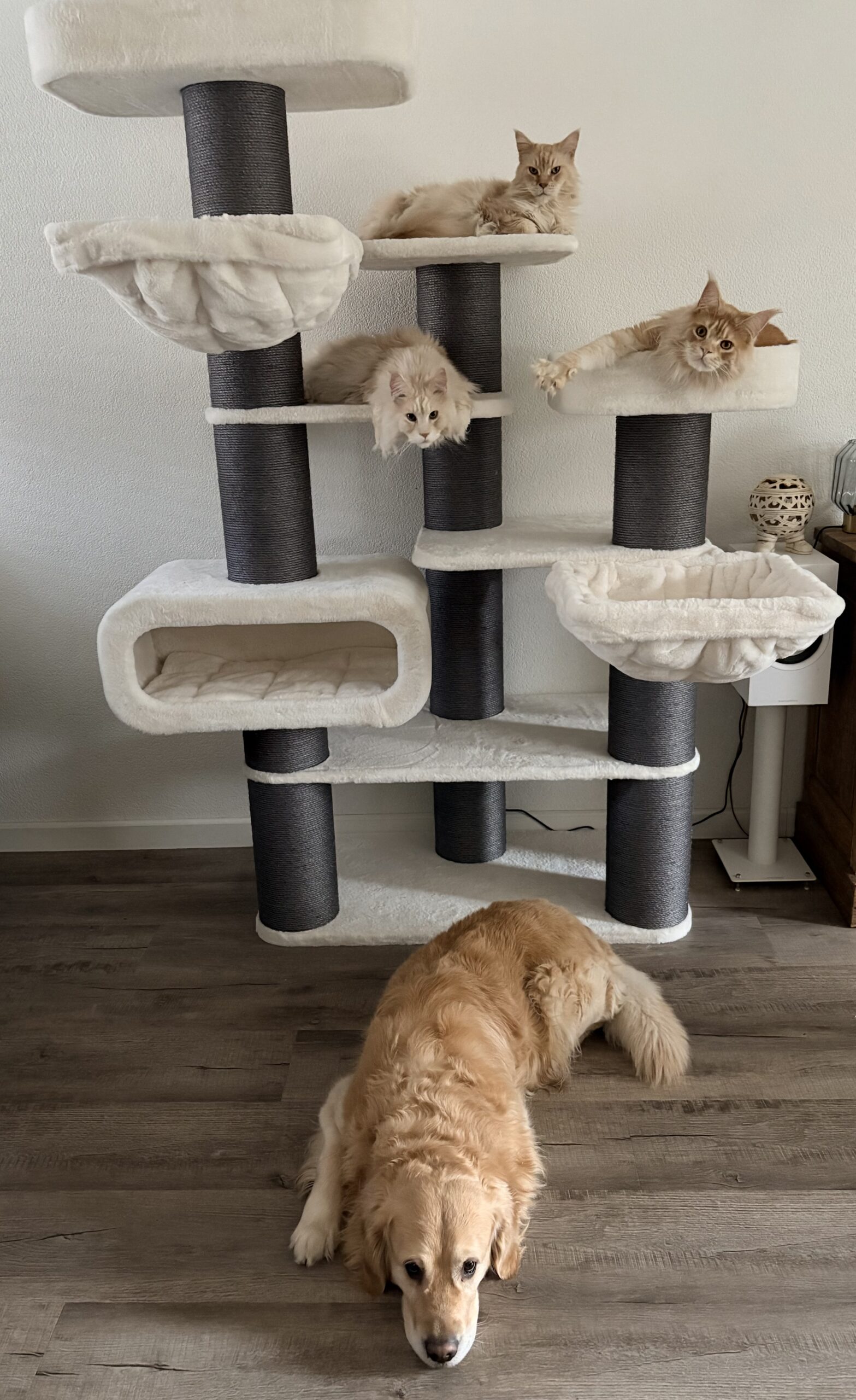Richtig toller Kratzbaum. Für meine beiden Tiger perfekt. Für eine Person gut aufzubauen steht stabil. Wir werden unsere Freude haben.