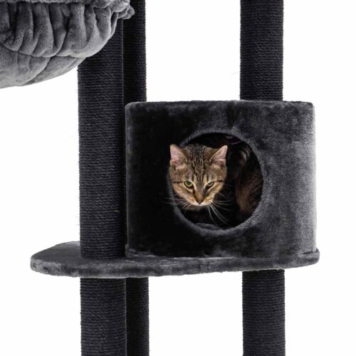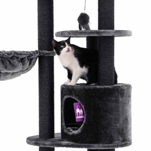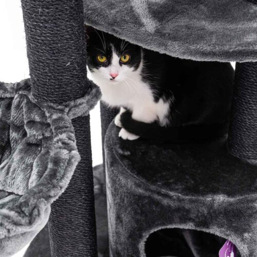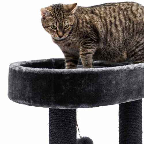 Très bon arbre à chat, il est de qualité. Lourd et solide, il convient à mon main coon. Le jouet suspendu a vite été arraché mais il est facilement remplaçable par tout autre jouet grâce à l’attache fixée sur la structure. Parfait.