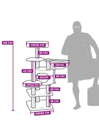 Ce griffoir compact a vraiment tout ce dont un vrai Rebelle royal a besoin, sans prendre trop de place. Dormir, jouer, gratter et rôder, avec le Jane 138 tes Rebelles seront comme chez eux. Avec des tiges de grattage de pas moins de 9 cm d’épaisseur, une tanière de sommeil moelleuse, un joli hamac et un panier de salon extra-large au sommet, ce griffoir répond à tous les besoins. Et grâce à la plaque de base extra-épaisse, ce meuble cool pour chat tient debout comme une maison.