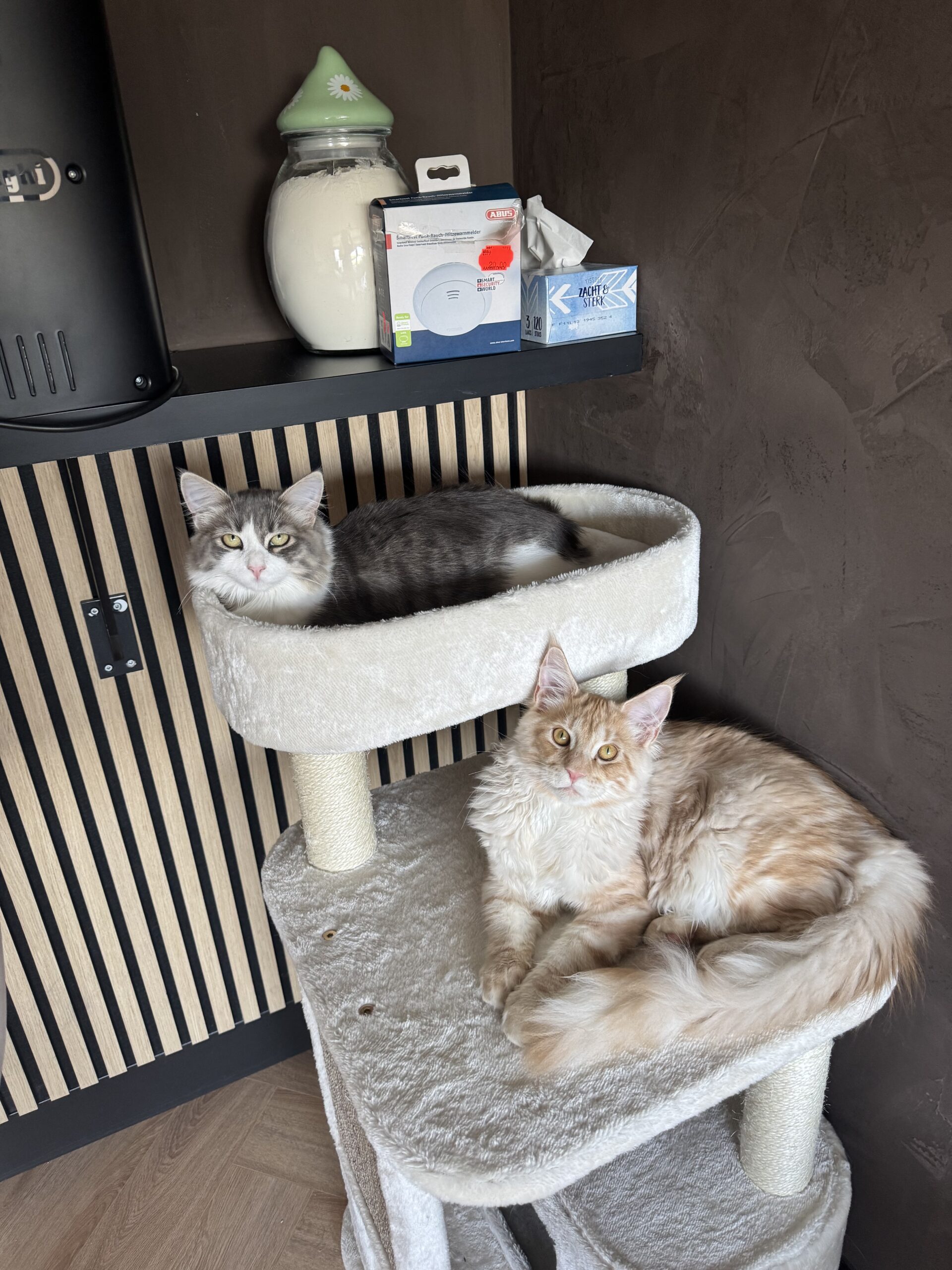 Niet zo geschikt voor grote katten staat erbij vermeld maar onze Maine Coon en Noorse boskatten genieten volop van deze stabiele krabpaal