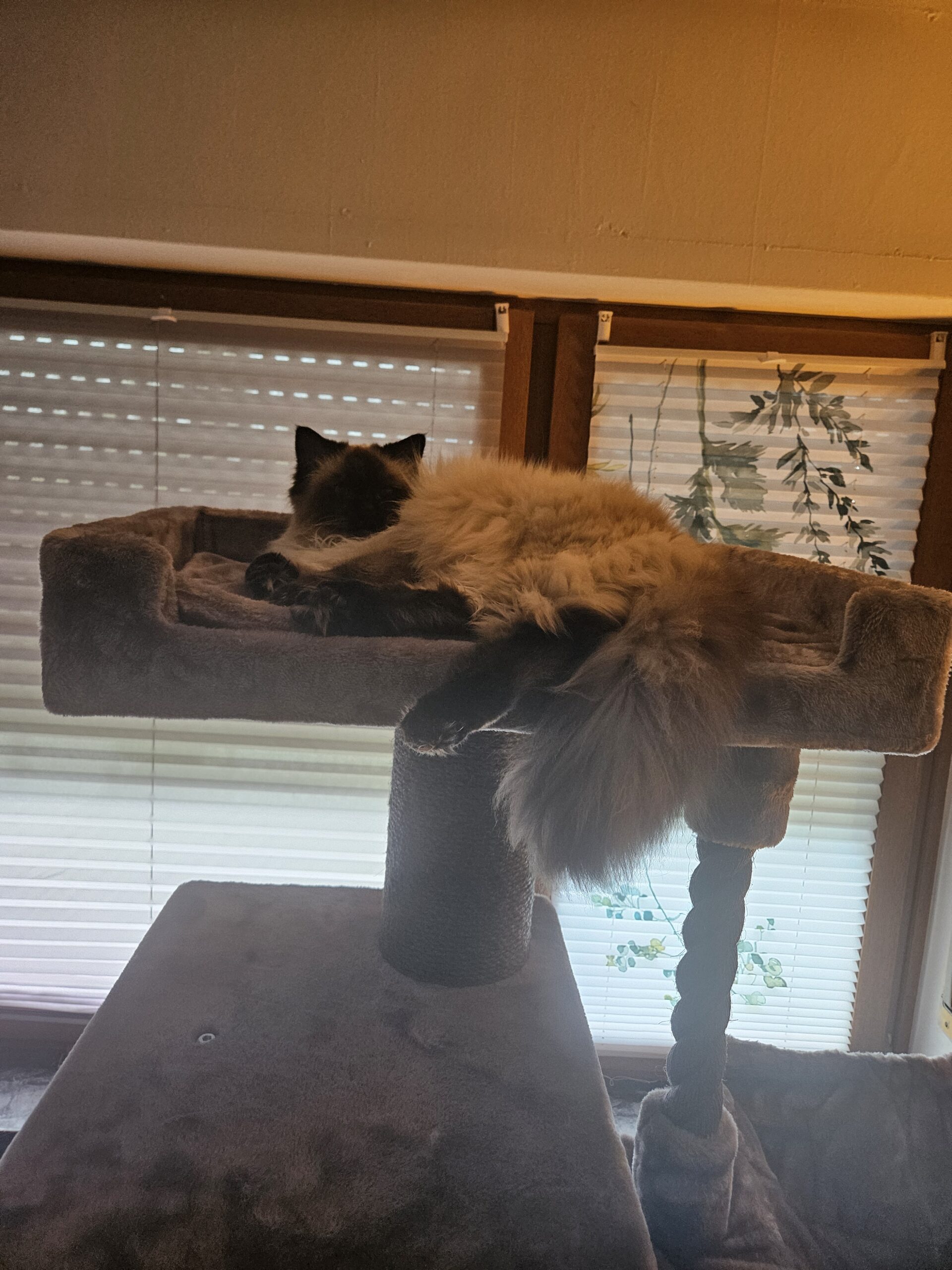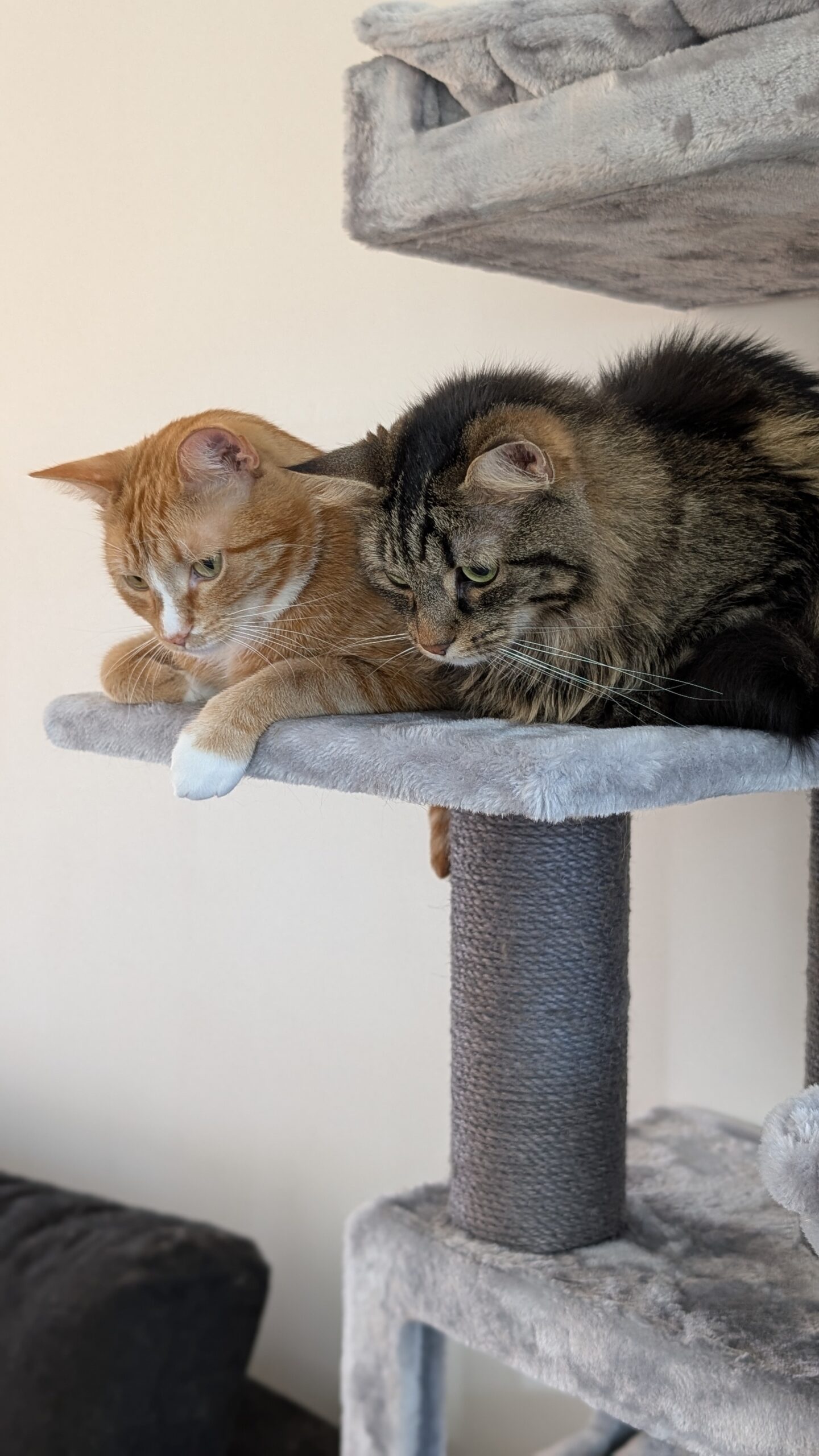 Bought this Cat-tree at the end of 2022 and my cats love it! I have a MaineCoon-Mix and a normal Housecat and both enjoy the tree a lot! Especially loved are the cave and the platform on top. Only thing they avoid is the hammock. I took it out but I want to try to get just a simple platform as replacement; like the one at the bottom.