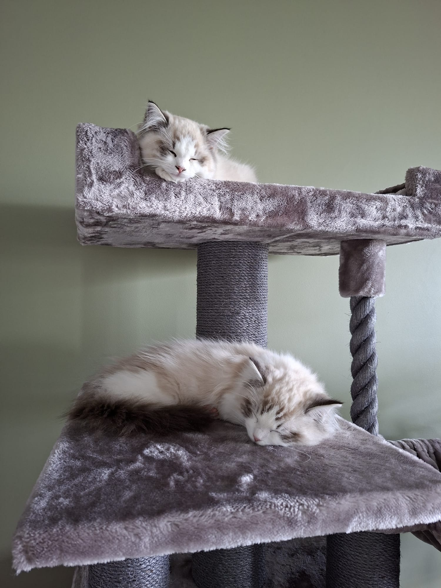 Ein wunderschöner Kratzbaum, der super einfach aufzubauen ist. Unsere beiden Stubentiger haben jeweils ihren eigenen Kratzbaum bekommen, sofort ihr Revier markiert und sich gemütlich zum Schläfchen hingelegt. Der Tipp mit der Katzenminze von der Website war perfekt!