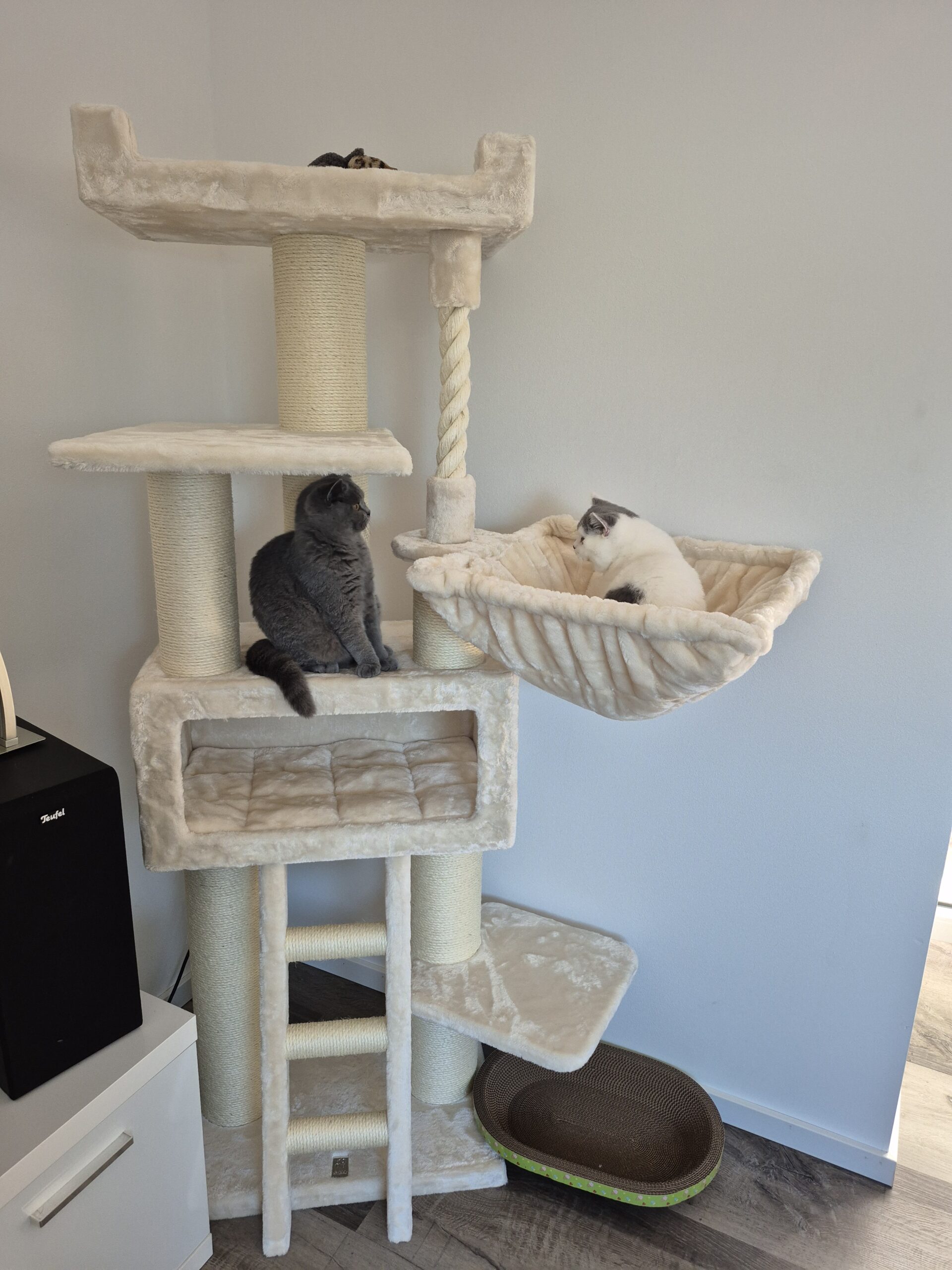 Facile à monter, adopté tout de suite par mes deux chattes. Une belle qualité et très beau. Pris en crème pour un intérieur plus lumineux. Vraiment très contente de cet achat !