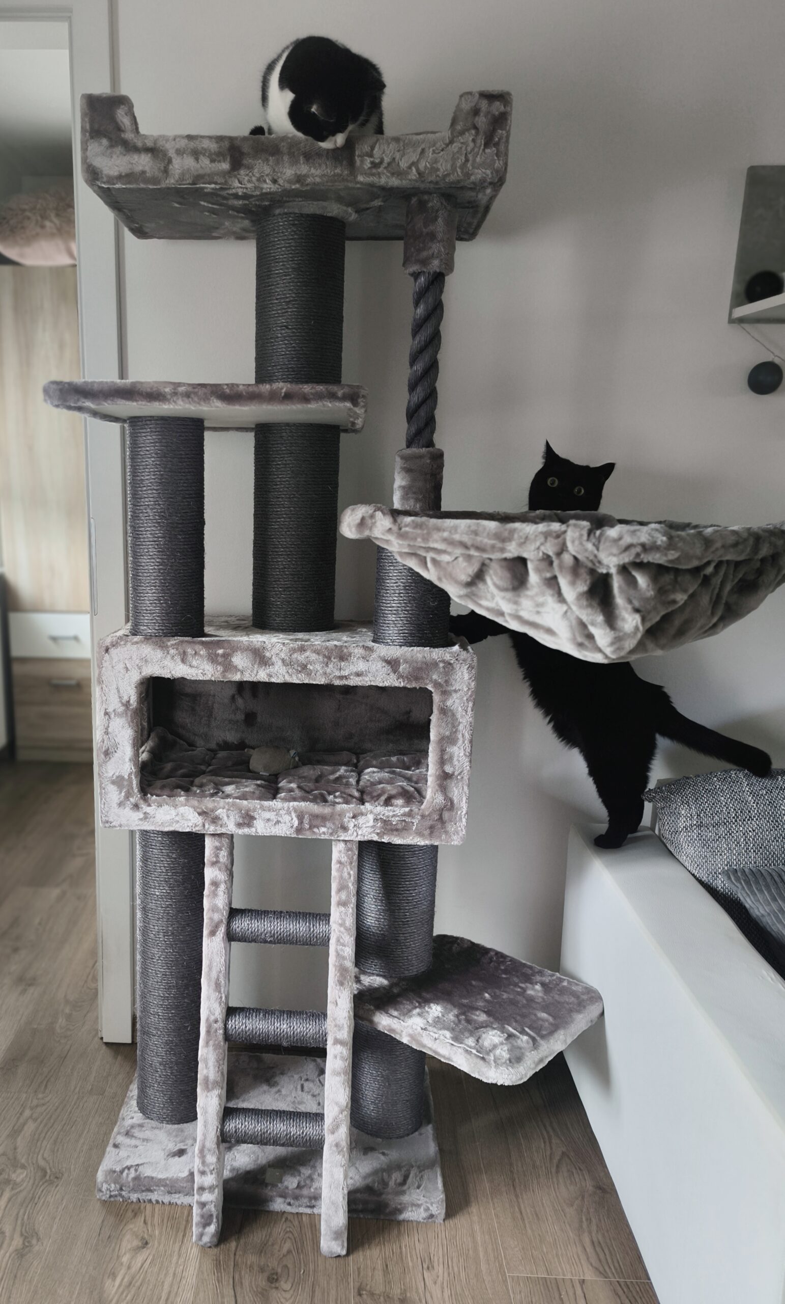 Beide Katzen lieben ihn, v.a. die Hängematte (das nächste Mal muss es unbedingt einer mit zwei Hängekörbchen sein ;)).