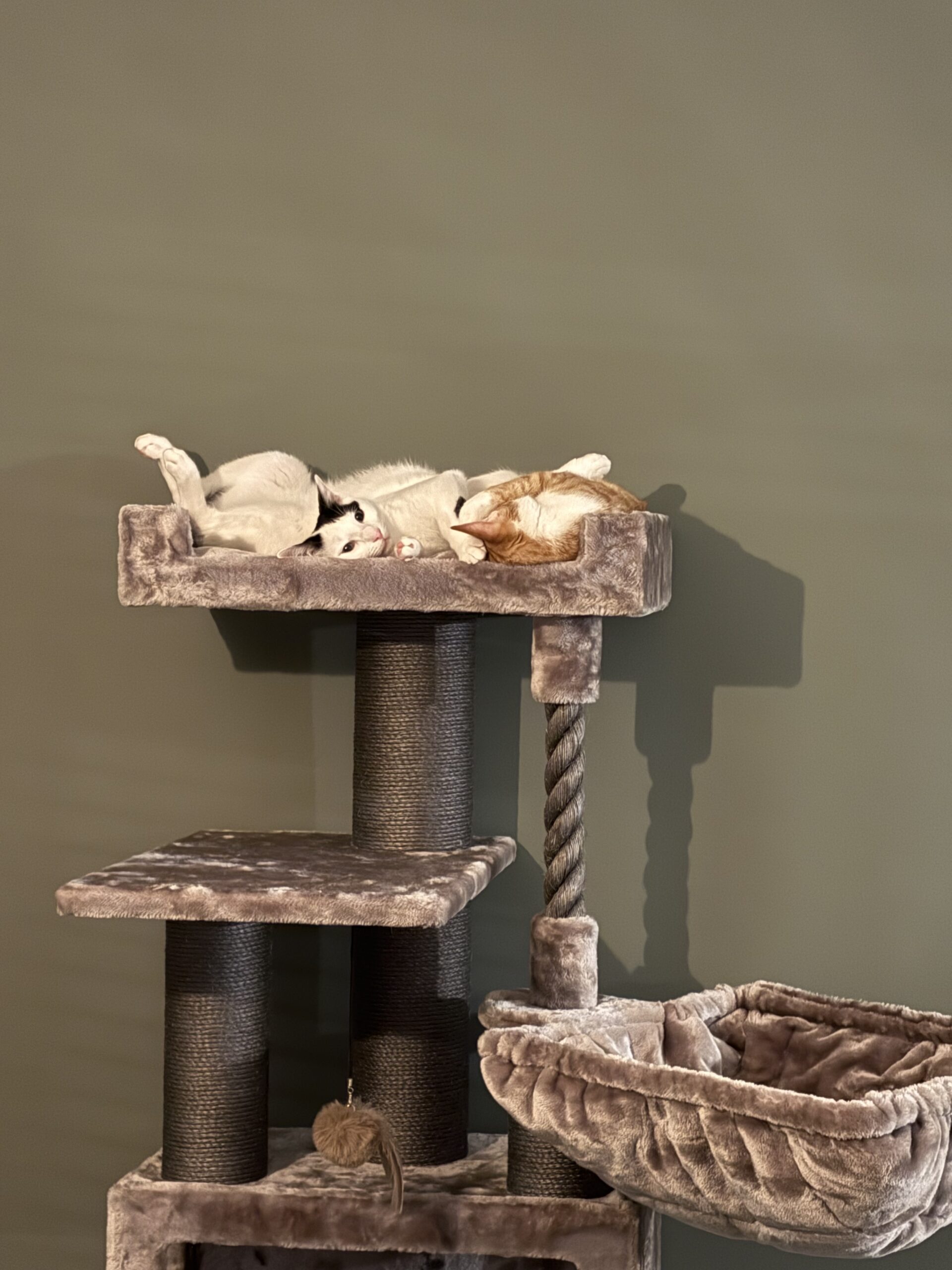 Ein wunderschöner Kratzbaum, der super einfach aufzubauen ist. Unsere beiden Stubentiger haben jeweils ihren eigenen Kratzbaum bekommen, sofort ihr Revier markiert und sich gemütlich zum Schläfchen hingelegt. Der Tipp mit der Katzenminze von der Website war perfekt!
