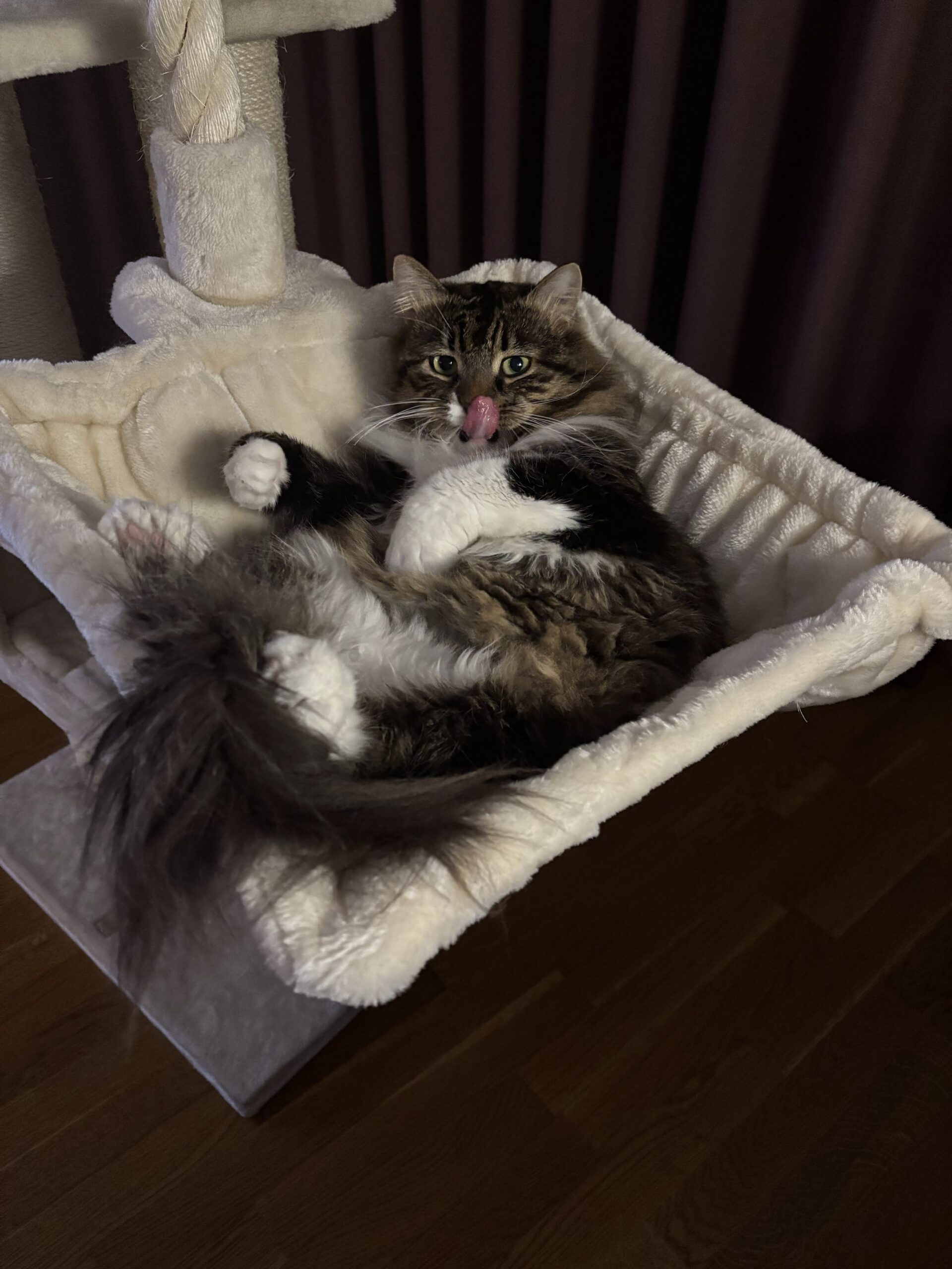 Mein MaineCoon-Mix Kater zappelt sehr viel im Schlaf. Ein normaler Kratzbaum war okay aber er hat sich ein paar mal im Schlaf von ganz oben runter geschmissen, also musste ein größerer Kratzbaum her! Der Parklane war dafür perfekt! Nicht zu groß, stabil und der Schlafplatz oben hat eine Kante, das mein Kater da genug Platz hat und sich nicht runter zappeln kann. Und der Stoff ist auch super weich. Nur müssen meine Katzen jetzt noch lernen der Hängematte zu trauen, haha~!