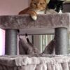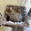 Heerlijk stevige krabpaal waar onze drie gekken heel erg blij mee zijn! Het bovenste mandje hebben we verplaatst naar de andere paal, dat kwam mooier uit met de inrichting hier. Twijfels over het hangmandje, daar doen ze nog niet zoveel mee. De bovenste plank is mega favoriet. Er is regelmatig een gevecht voor “King of the Hill”!