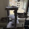 Heerlijk stevige krabpaal waar onze drie gekken heel erg blij mee zijn! Het bovenste mandje hebben we verplaatst naar de andere paal, dat kwam mooier uit met de inrichting hier. Twijfels over het hangmandje, daar doen ze nog niet zoveel mee. De bovenste plank is mega favoriet. Er is regelmatig een gevecht voor “King of the Hill”!