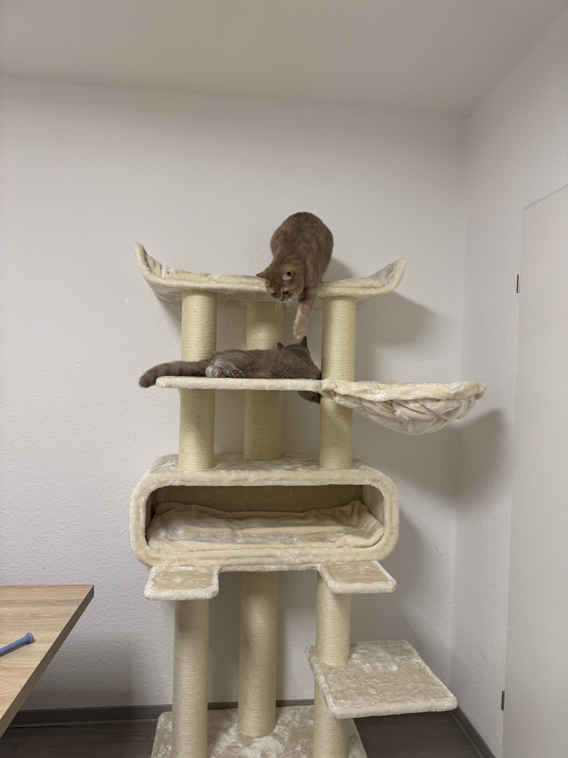 Super schöner und stabiler kratzbaum, einfach aufzubauen , meine Fellnasen konnten es kaum abwarten bis er aufgebaut war und wurde gleich in Beschlag genommen