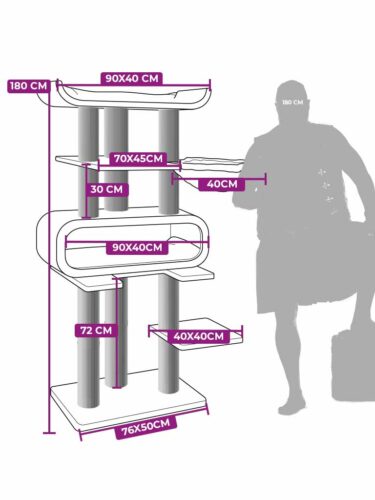 Ton chat aime-t-il grimper ou s’asseoir en hauteur ? Offre à ton chat un merveilleux paradis pour grimper et faire ses griffes avec notre griffoir Route 180. Avec sa hauteur de 1,80 mètre, cet arbre à chat est un véritable oiseau de haute volée. Il est parfait pour les chats qui aiment l’aventure, mais c’est aussi un refuge douillet pour les chats un peu inquiets – qui aiment se retirer dans un endroit élevé et garder un œil sur tout et tout le monde de là. Et grâce à la peluche ultra-douce, ton chat atterrira en douceur n’importe où !