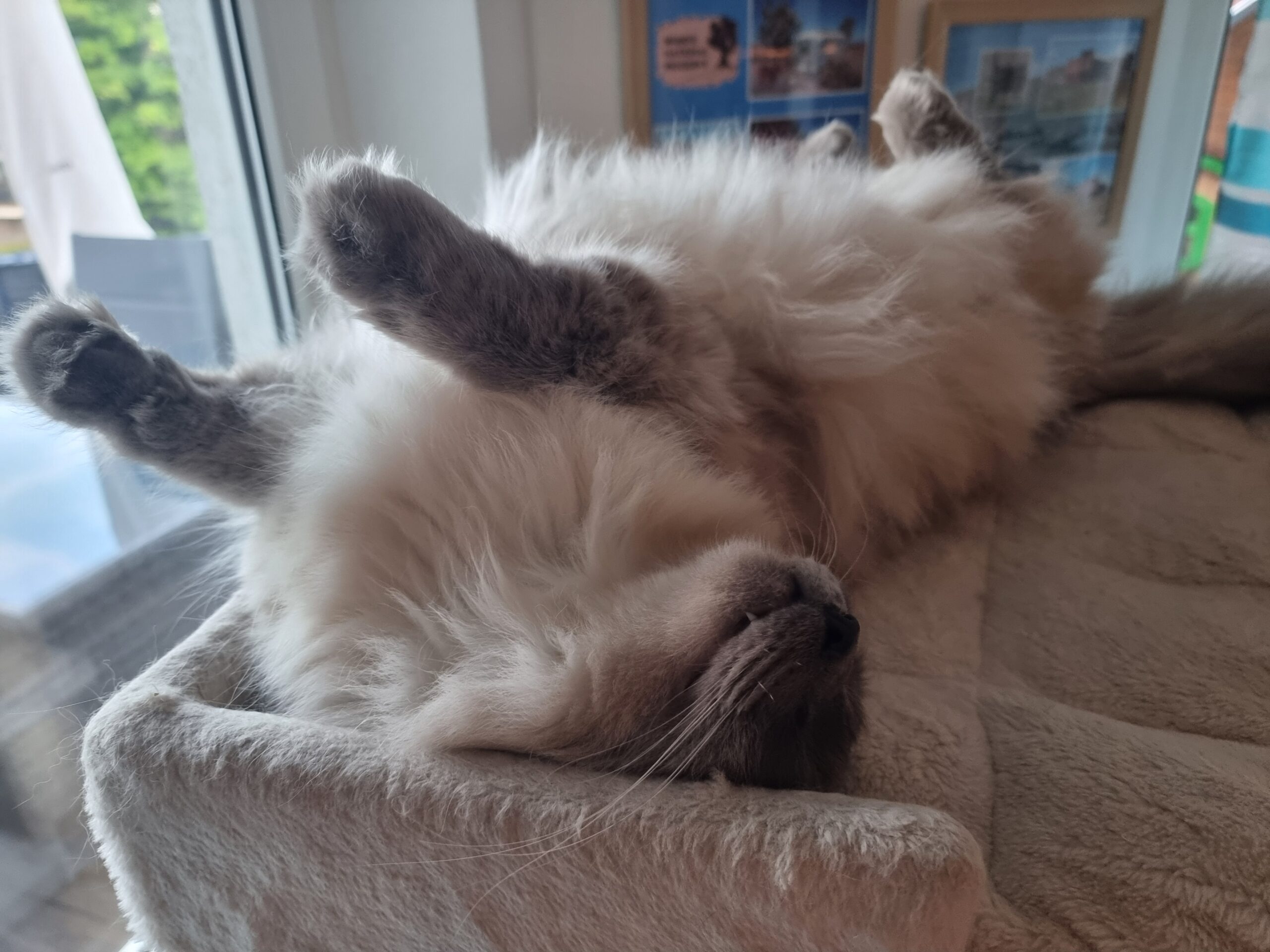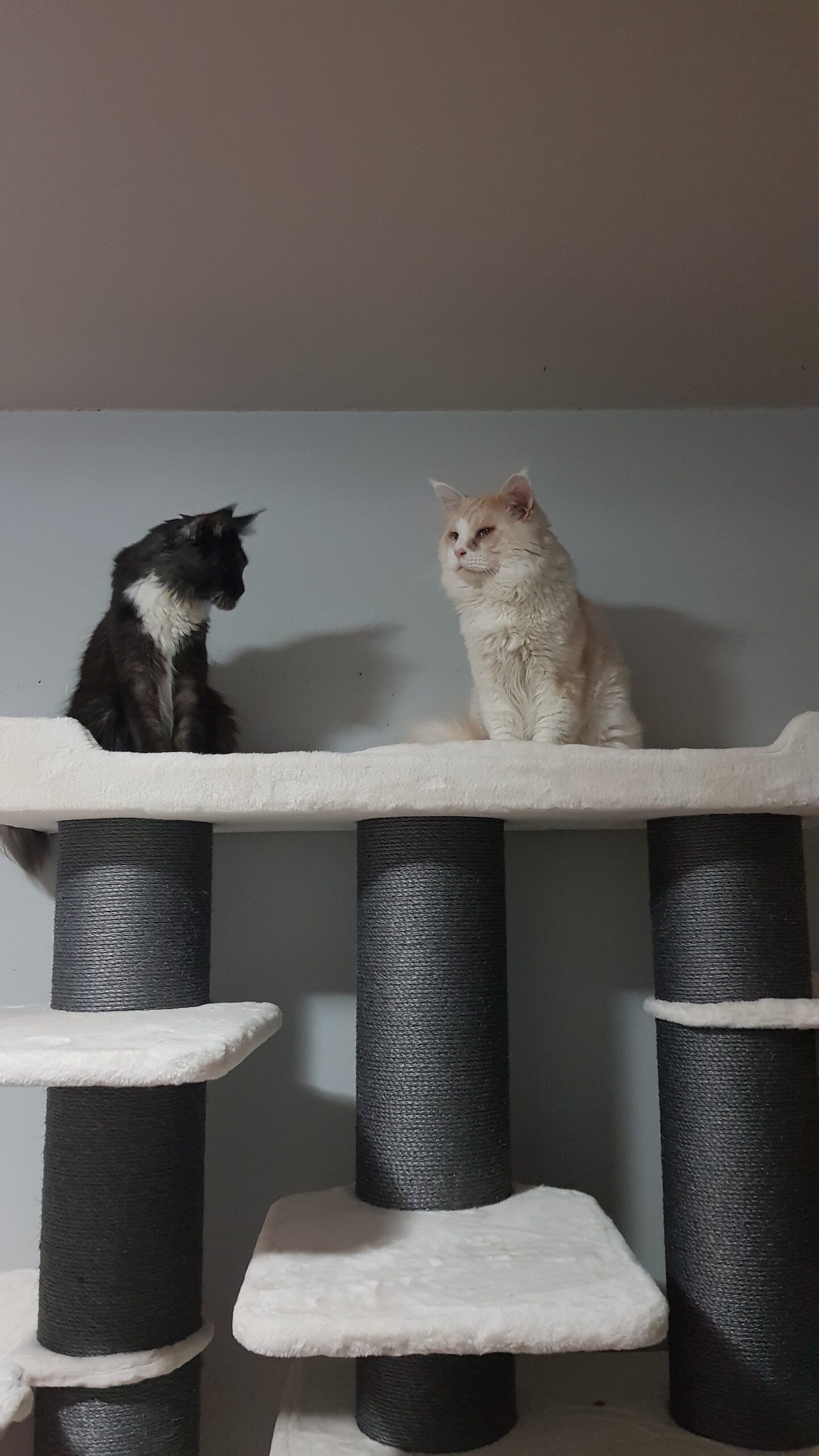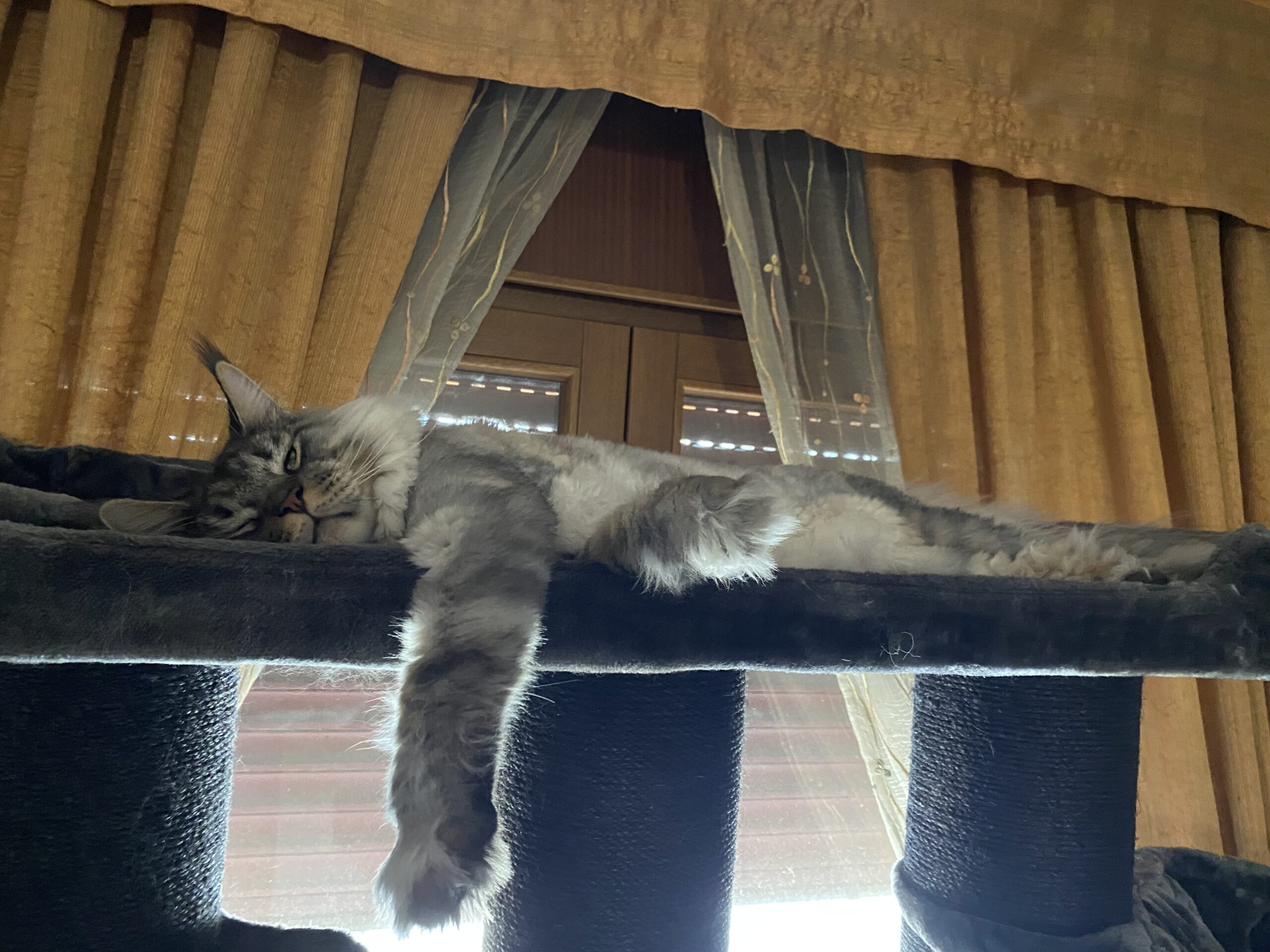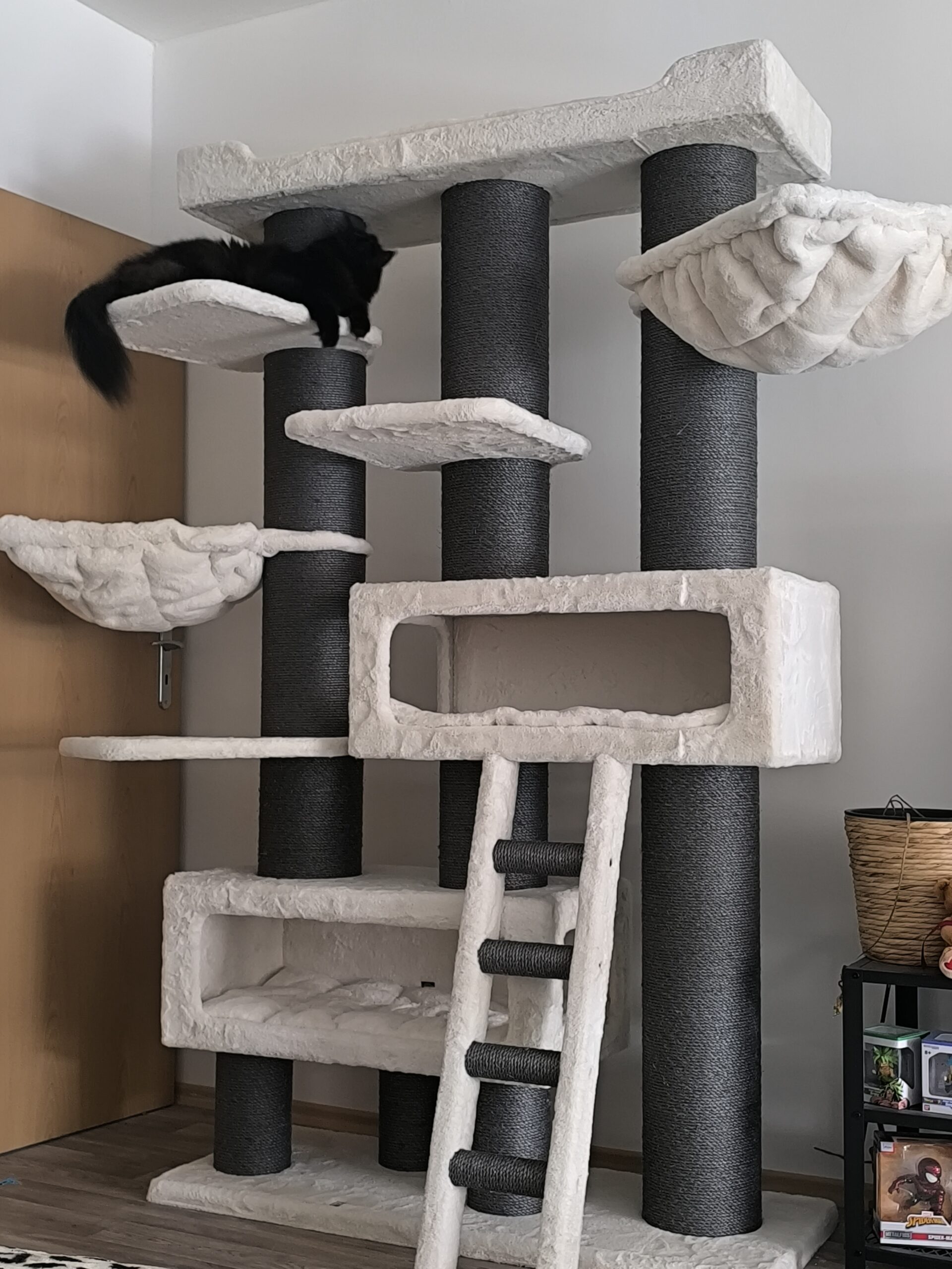 Mon Tayiko étant un Norvégien de 7kg, pas facile de trouver un arbre à chat lui résistant et ne pliant pas sous son poids.