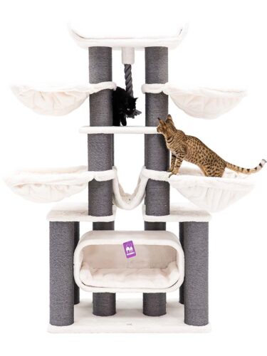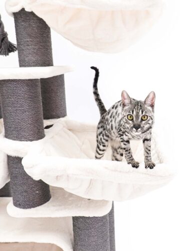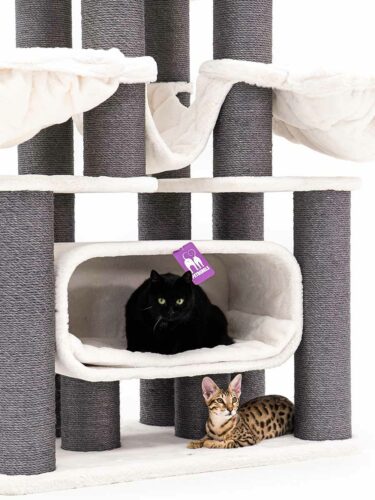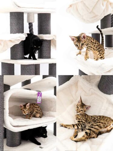 Unsere drei Katzen waren sofort verliebt und haben sofort den gesamten Baum erkundet. Unsere Königin scheint besonders von der Hängematte begeistert zu sein.