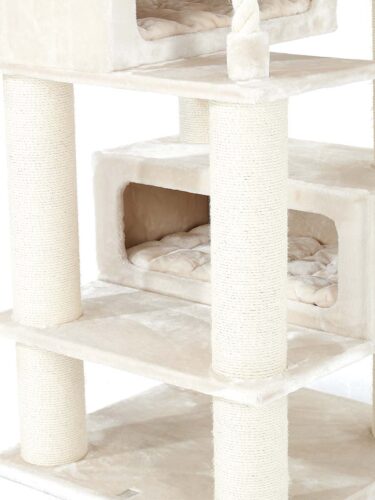 Vous cherchez un paradis de jeu pour vos chats ? Ne cherchez plus, vous avez trouvé l’arbre à chat le plus complet et le plus luxueux. Notre Turnpike 200 n’est pas seulement un régal pour vos chats avec ses généreuses niches, ses luxueux hamacs, sa corde de jeu épaisse et ses poteaux à griffer généreux. Ce modèle est également un régal pour les yeux car son esthétique est bien réussi. Il contient tout ce dont votre chat a besoin pour s’amuser à griffer et à grimper. De plus, sa forme élégante et sa combinaison de couleurs tendance le rendent particulièrement agréable à regarder.