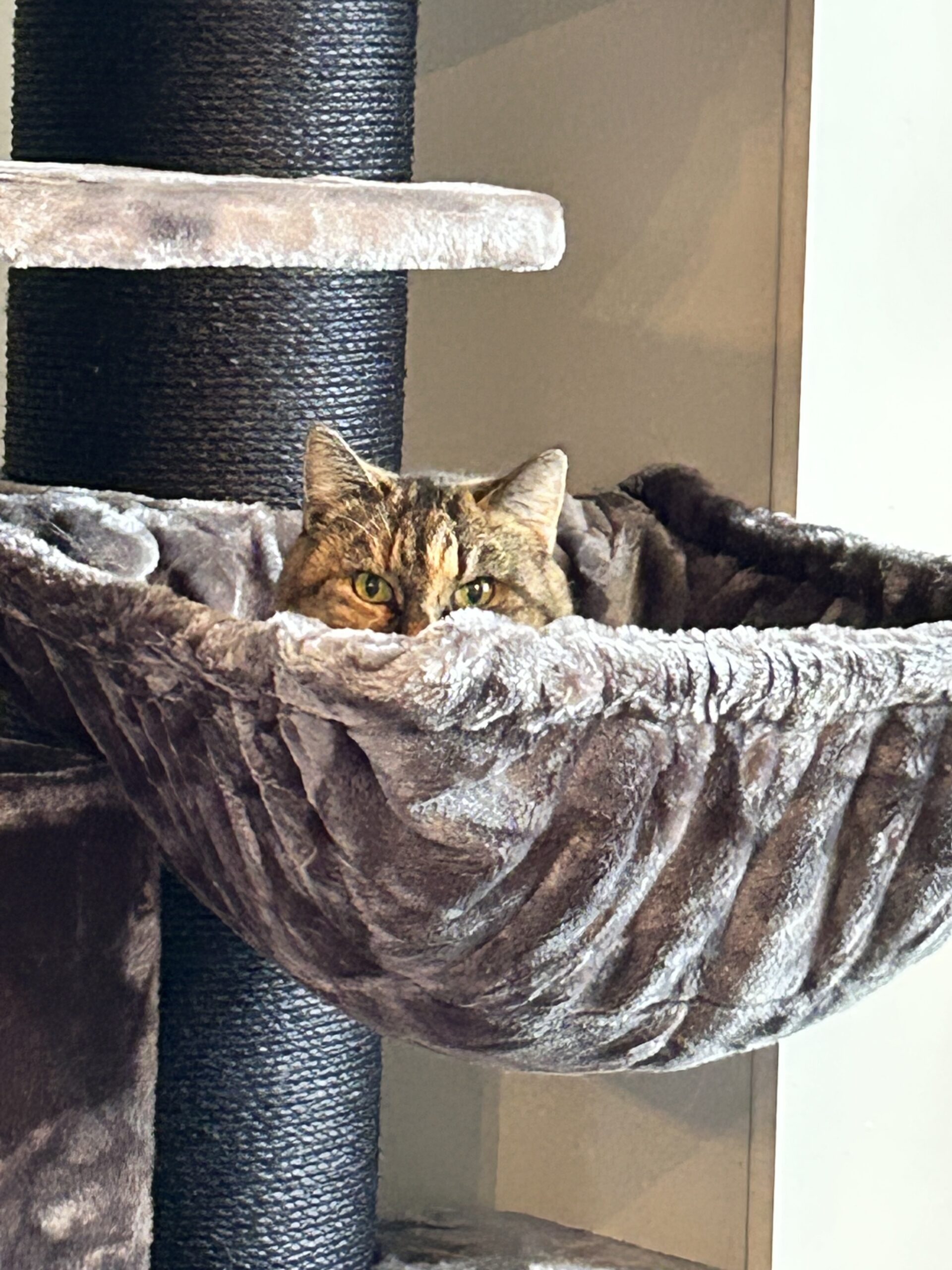 Es wird sogar die Unterste Höhle genutzt. An diesem Kratzbaum ist alles, was eine Katze liebt.