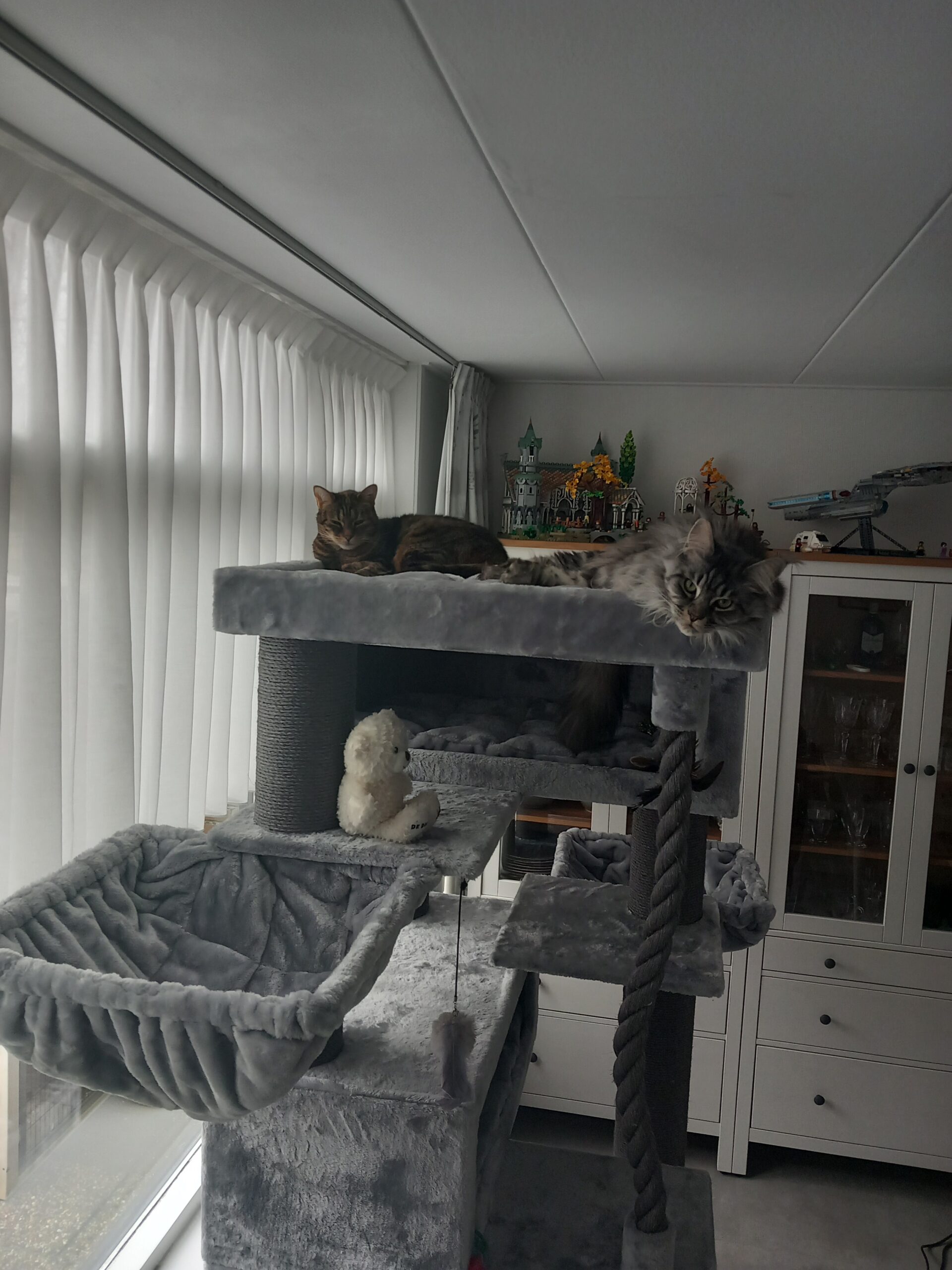 Nog voor hij in elkaar zat meteen de nagels scherpen en in de delen die begaanbaar waren er in kruipen ze zijn er helemaal blij mee (maine coon + ragdoll x perz)