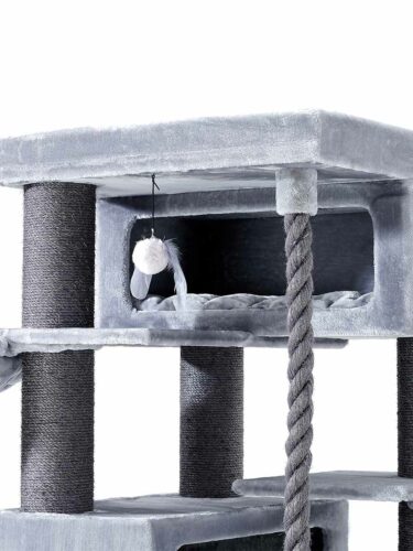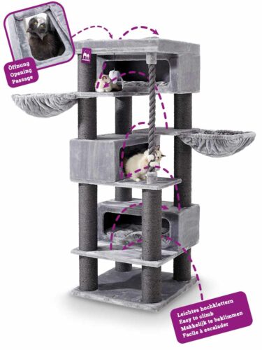 Vous cherchez un paradis de jeu pour vos chats ? Ne cherchez plus, vous avez trouvé l’arbre à chat le plus complet et le plus luxueux. Notre Turnpike 200 n’est pas seulement un régal pour vos chats avec ses généreuses niches, ses luxueux hamacs, sa corde de jeu épaisse et ses poteaux à griffer généreux. Ce modèle est également un régal pour les yeux car son esthétique est bien réussi. Il contient tout ce dont votre chat a besoin pour s’amuser à griffer et à grimper. De plus, sa forme élégante et sa combinaison de couleurs tendance le rendent particulièrement agréable à regarder.