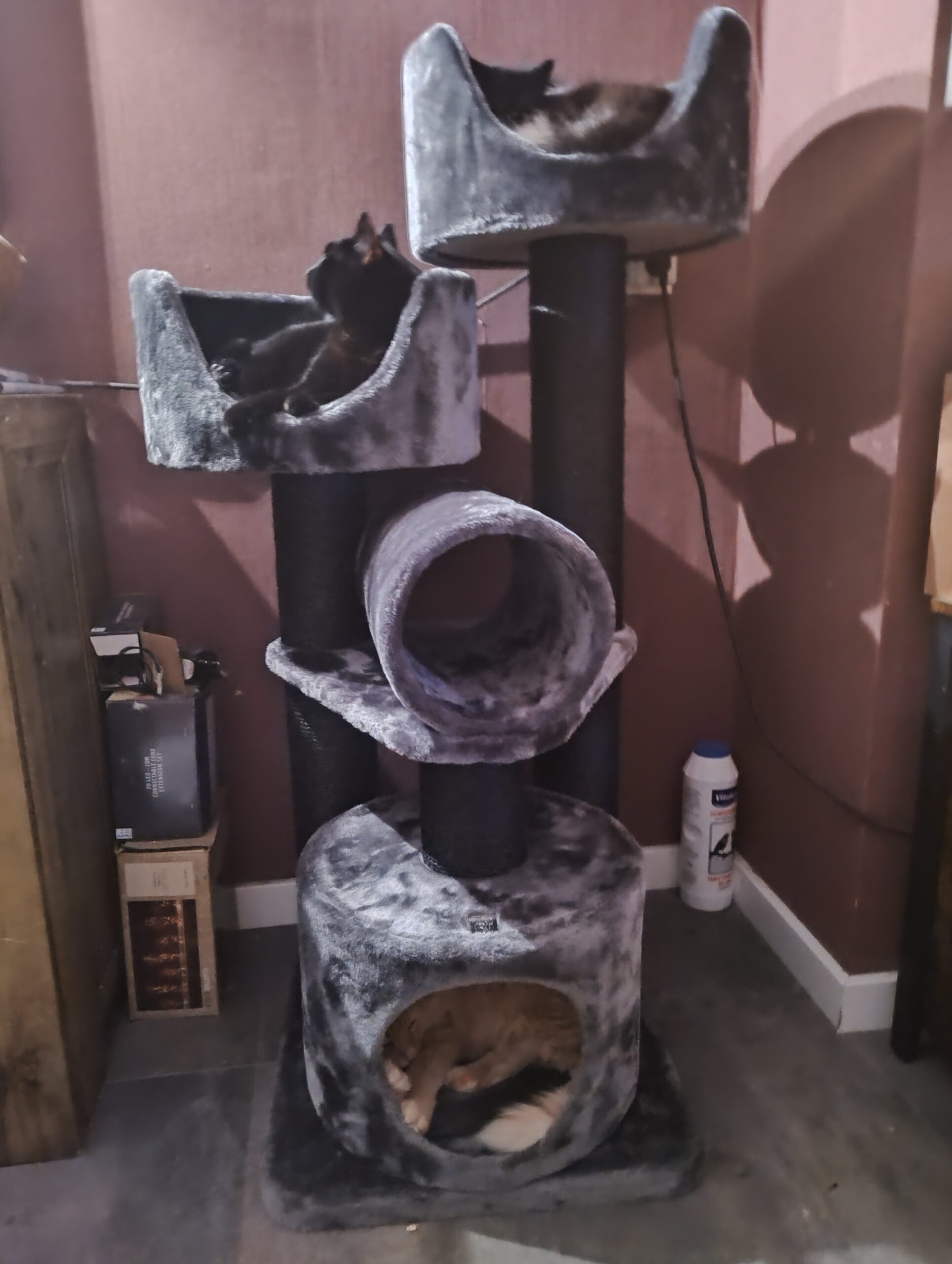 Geweldige krabpaal speel en slaap plek onze twee katten zijn er helemaal weg van ..