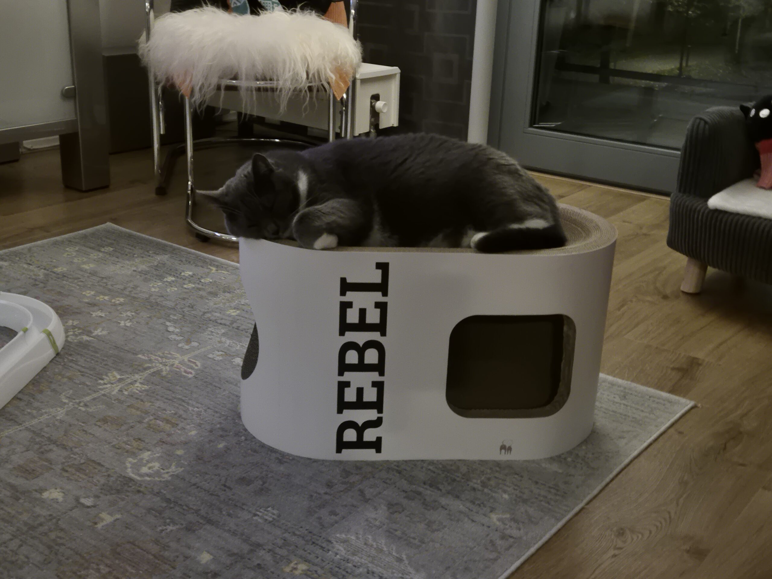 Tu cherches un arbre à chat facile à transporter et durable qui rendra ton chat heureux ? Alors notre Ruby 60 est exactement ce qu’il te faut. En effet, ce petit arbre à chat très sympa est fabriqué en carton recyclé, dure longtemps et possède tout ce que les chats aiment. Sur ce meuble à griffer en carton, ton chat peut faire ses griffes à l’infini, mais il peut aussi s’y coucher confortablement ou s’y cacher. La structure stable du carton est agréable au toucher et idéale pour les chats qui souhaitent parfois faire leurs griffes à l’horizontale – c’est bon pour leurs muscles, cela garde leurs griffes propres et leur procure la détente nécessaire. Ruby est parfait pour les chats qui veulent parfois s’isoler et s’adapte partout dans ta maison !