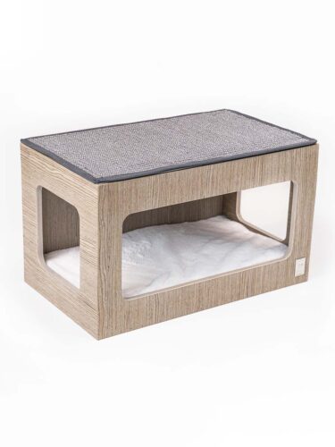 Les chats adorent les boîtes, c’est donc notre point de départ lorsque nous avons imaginé le Niche Box 60. Cette niche pour chat s’accroche au mur et est beau et belle spacieuse. Tous les chats voudront y faire leurs beaux rêves ! Et il peux aussi y faire tes griffes, car le dessus est recouvert d’un solide tapis en sisal. La boîte 60 fait partie de notre collection Wall of Rebels : ce sont de merveilleux produits dans lesquels les chats peuvent dormir, jouer, grimper, courir et faire leurs griffes. Et tu peux les combiner à l’infini ! Tu peux rendre chaque partie accessible avec les marches, l’horizon, le grattoir 70 ou l’échelle.