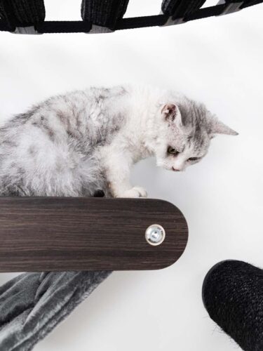 - Le hamac est fabriqué en bois d’eucalyptus solide et convient également aux chats grands et lourds