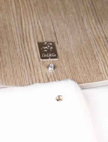 - Couleurs – Fourure blanc cassé et placage vieux gris