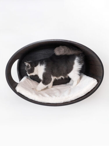 Tu veux vraiment gâter ton chat ? Fais plaisir à ton chat avec notre Oval Office 60, un panier à chat douillet et moelleux que tu peux accrocher à ton mur. Ce panier pour chat fait partie de notre collection Mur des rebelles : de beaux produits pour que les chats puissent dormir, jouer, grimper, courir dessus et faire leurs griffes. Et tu peux les combiner à l’infini ! Tu relies les endroits où dormir avec Bridge 43 cool ou le Scratch 70. Et tu rends chaque endroit facilement accessible en prolongeant ton mur pour chats avec les marches, l’horizon ou l’échelle. Et si tu as plus de chats, tu peux bien sûr aussi les gâter avec un bel espace de détente, comme la Box 60.