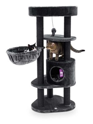 Petrebels krabpalen met hangmat zijn de perfecte combinatie van comfort en stabiliteit voor jouw geliefde kat. Onze hangmatten zijn ontworpen met duurzaamheid in gedachten, waardoor ze stevig genoeg zijn om tot wel 25 kg te dragen. Jouw kat kan nu genieten van ultiem ontspannen, zwevend boven de wereld, terwijl de krabpaal zorgt voor de nodige klauwonderhoud. Met Petrebels kies je niet alleen voor kwaliteit, maar geef je je harige vriend ook een heerlijke plek om te luieren en te krabben. Maak van de krabpaal met hangmat een waar paradijs voor jouw kat!