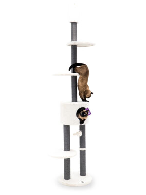 Als de krabpaal tot het plafond reikt, is je kat blij! Klimmen, krabben, rennen, schommelen en rondhangen op hoge hoogtes – dat is wat katten graag doen. Als de plafond krabpaal naast hoog ook nog gevarieerd en interessant genoeg is, dan wordt het vanzelf een avontuurlijke speelplaats. Je lieveling zal zich er snel thuis voelen!
