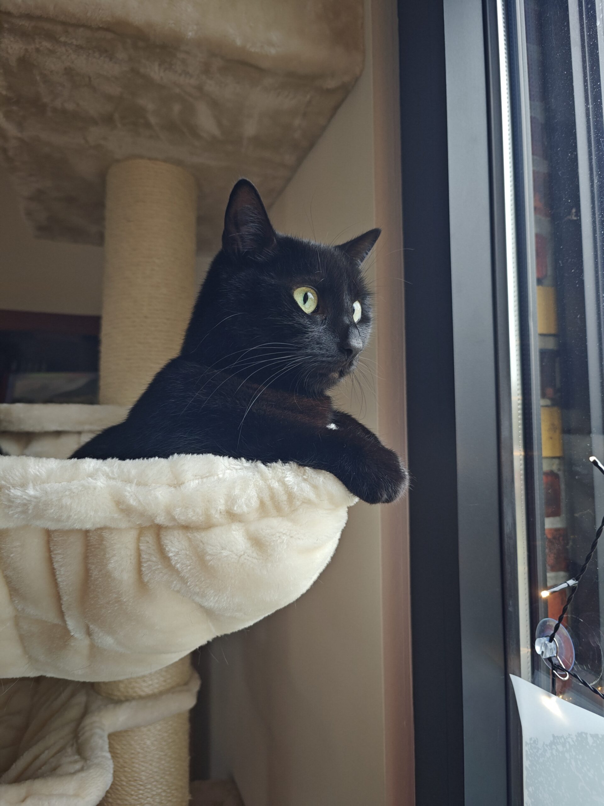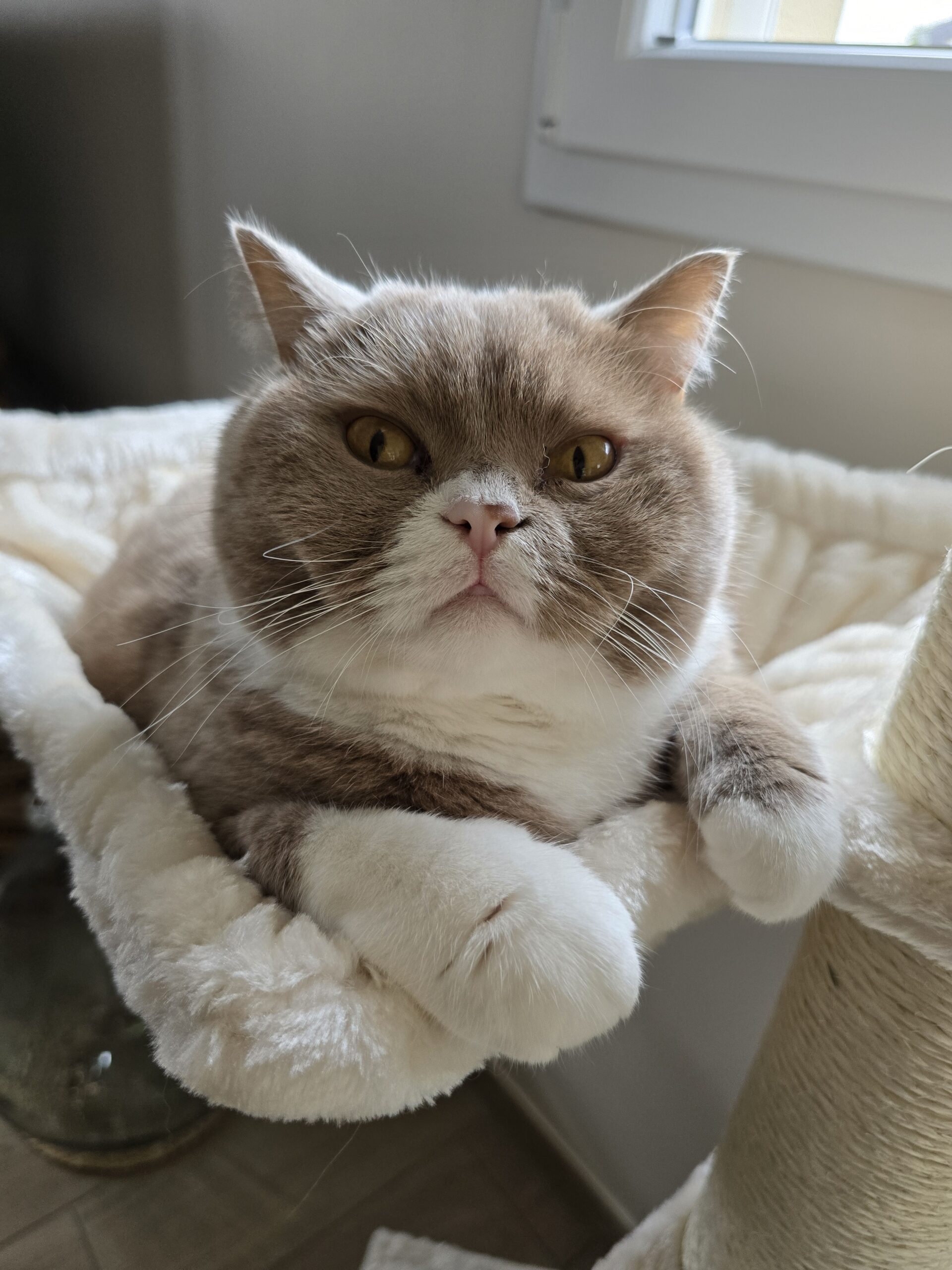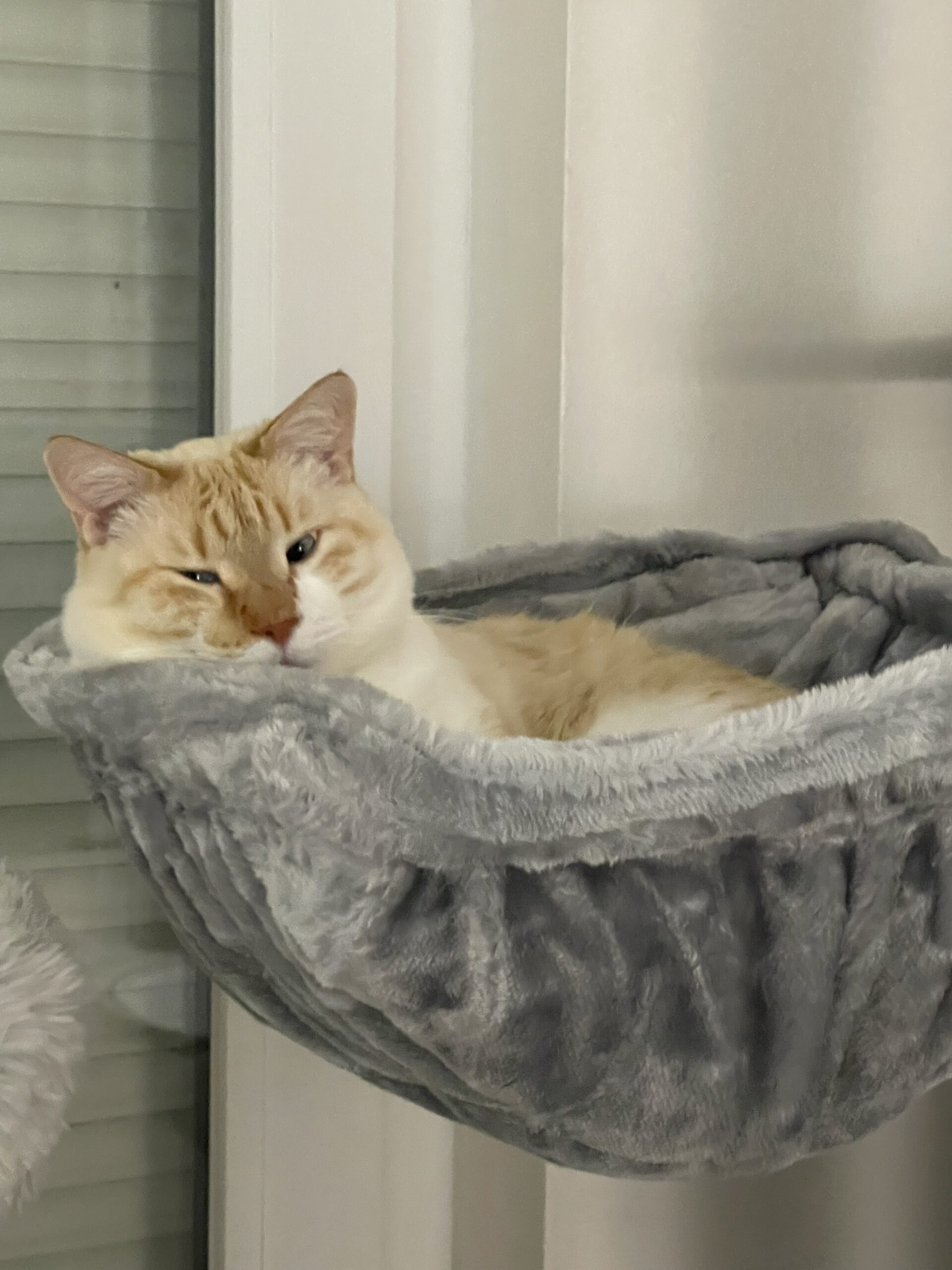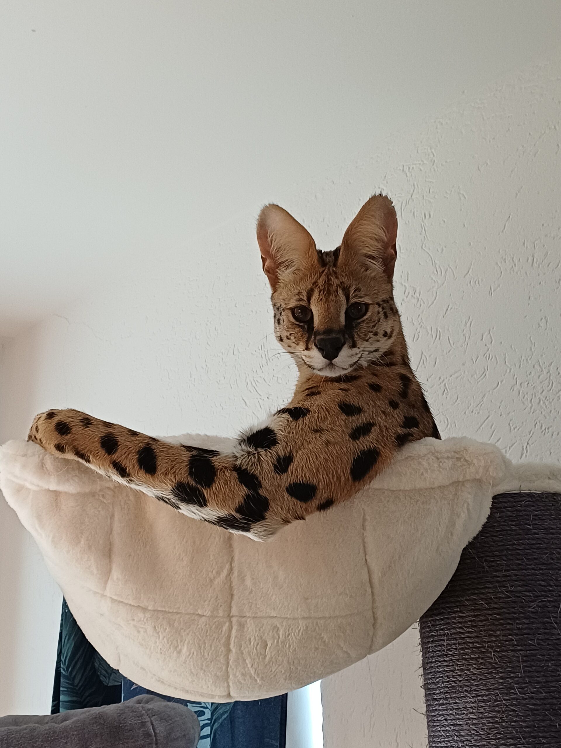 Tip: hou er rekening mee dat door de dikte van het metalen frame van de hangmat, de krabpaal iets minder recht staat.
