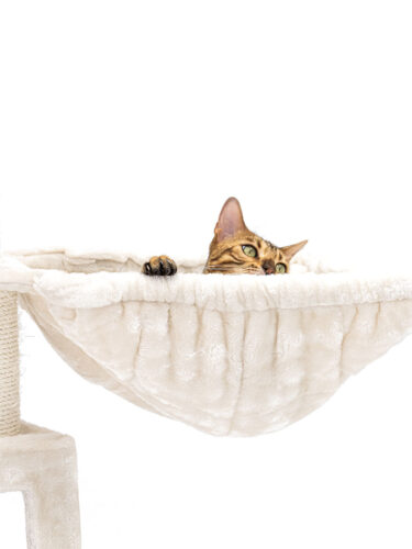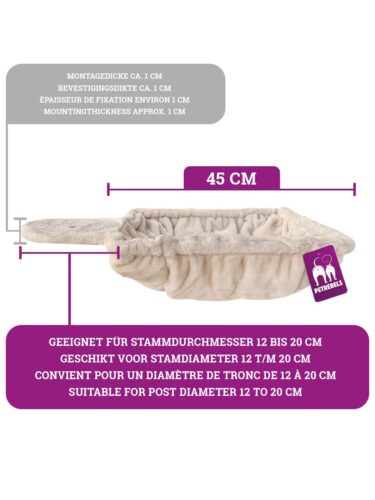 Tip: hou er rekening mee dat door de dikte van het metalen frame van de hangmat, de krabpaal iets minder recht staat.