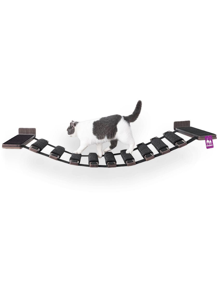 De Bridge 140 is een superleuk onderdeel om onze Wall of Rebels producten mee uit te breiden. Want hoe leuk is het als je kat via deze kattenbrug van zijn fijne slaapplek naar een stoere krabplank kan tijgeren?! Hang je Bridge 140 op? Dan maak je jouw kat gegarandeerd blij, want katten vinden het heerlijk om op hoge plekken te zijn. Deze kattenbrug is onderdeel van onze Wall of Rebels collectie: dat zijn prachtige producten waar katten in kunnen slapen, spelen, klimmen, aan kunnen krabben en in kunnen slapen. En die kun je eindeloos combineren! Ook op zoek naar een fijne slaap- of krabplek voor je kat? Kijk dan eens naar hangmat Lazy 50 en krabplank Scratch.